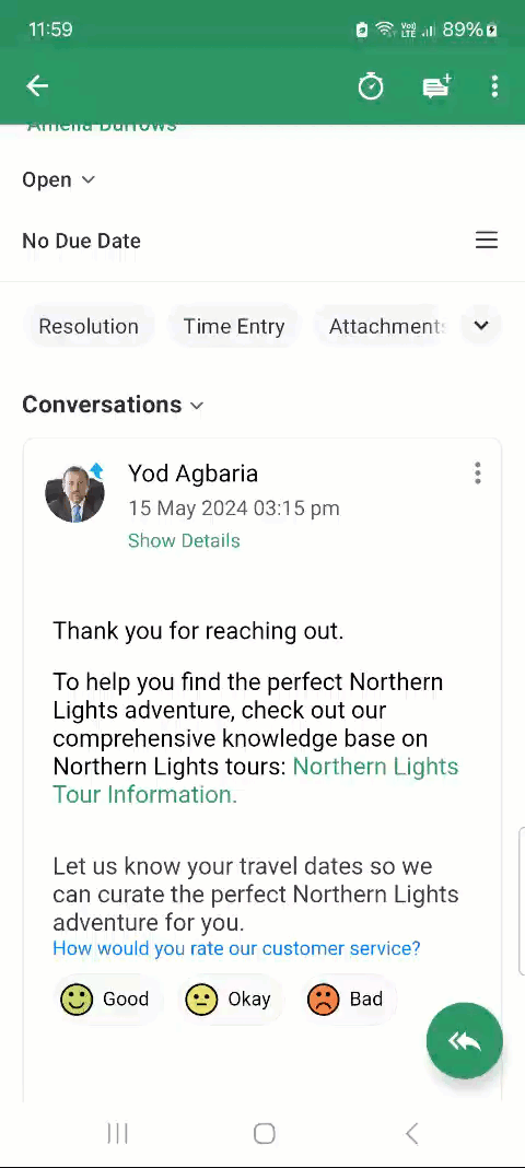 • Android用Zoho Deskアプリにおける活動タブの利用