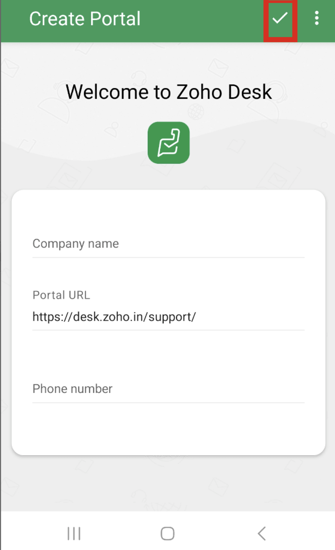 組織名(会社名)、ポータルのURL、電話番号を入力し、画面右上にある(チェック)アイコンをタップします。