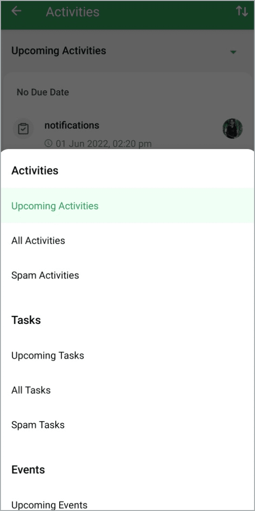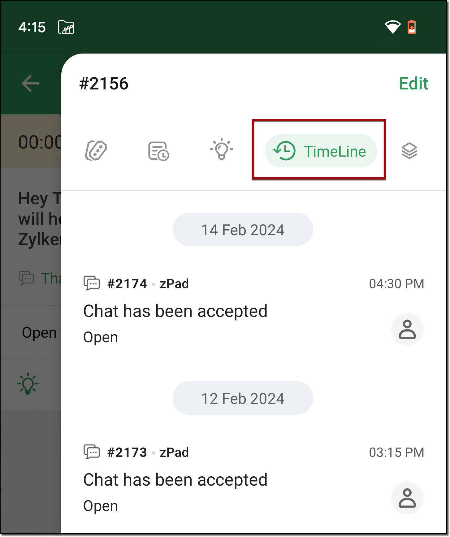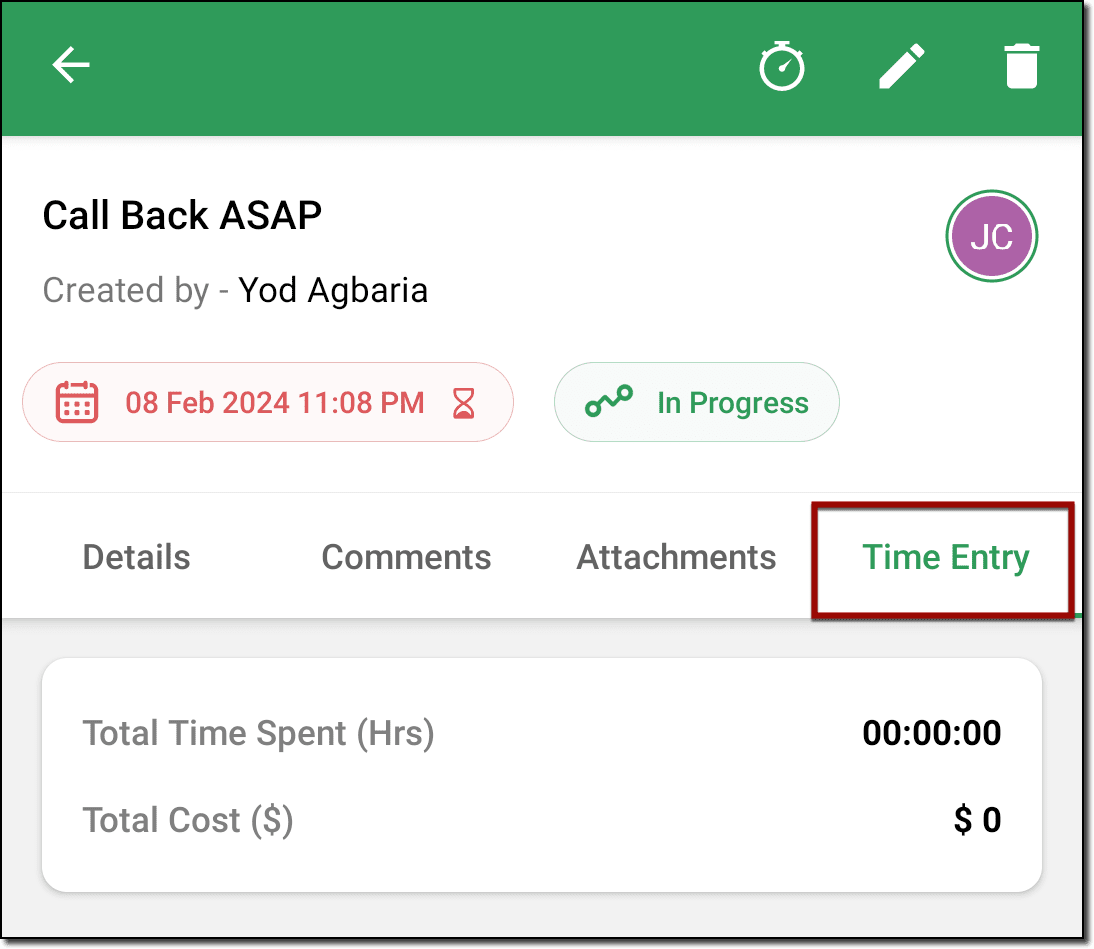 - 問い合わせの詳細ページを開き、活動アイコンをタップします。