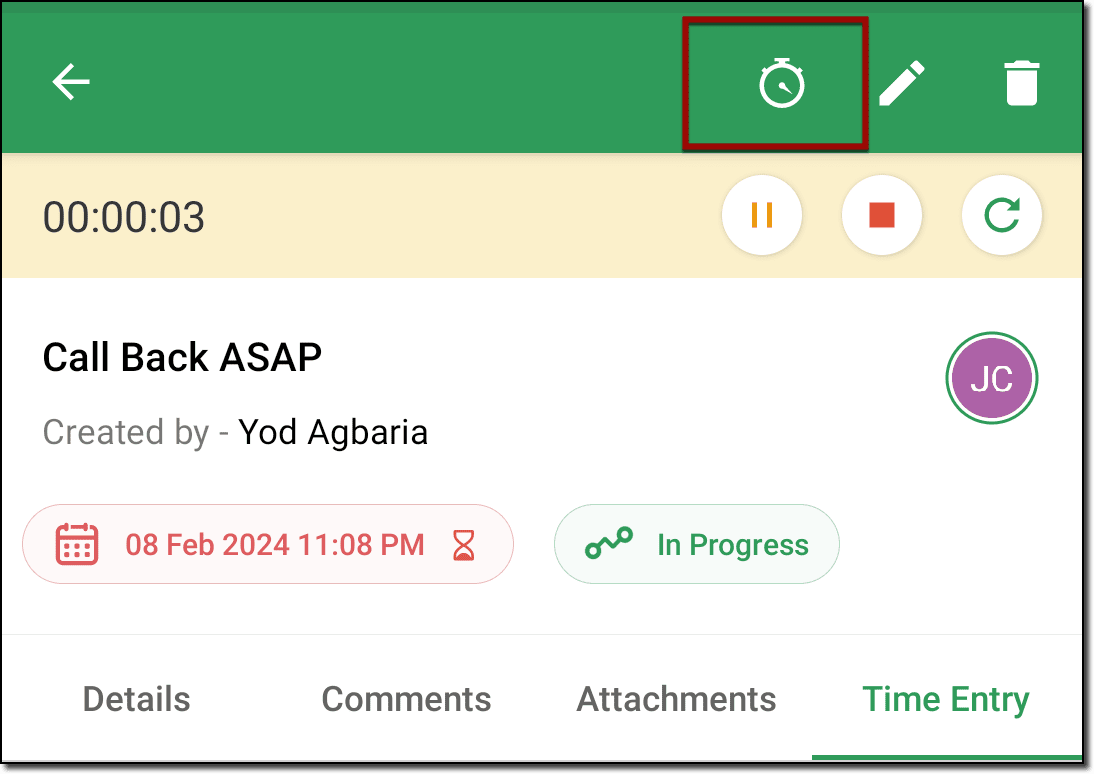 - 計測の終了後、停止アイコンをタップし、工数を保存します。