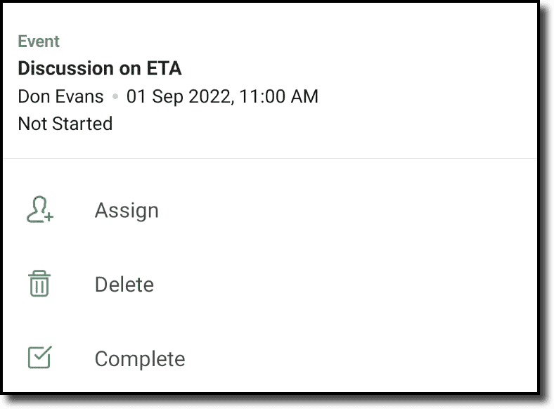 - 対象の活動の欄で左にスワイプし、操作メニューを表示します。以下のいずれかの操作を実行できます。