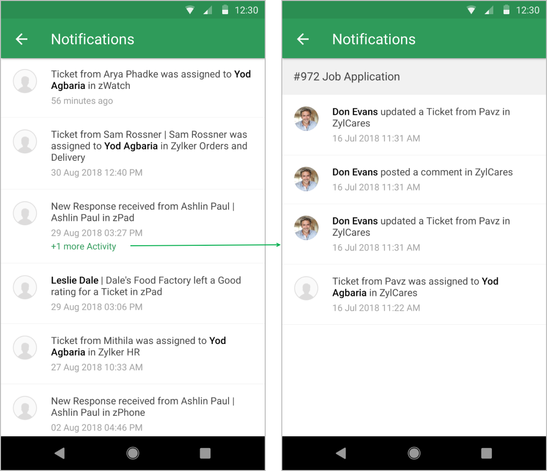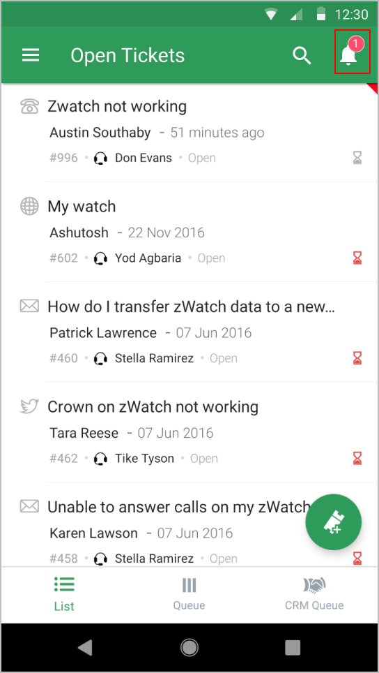 Zoho Deskでは、エンドユーザー/担当者に通知するための、標準的な通知ルールを利用できます。通知は、メール/SMS/テキストメッセージ経由で送信できます。モバイルアプリでは、通知の表示はできますが、通知ルールの設定はできません。