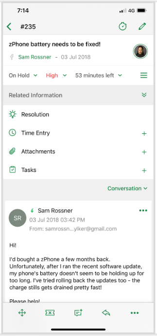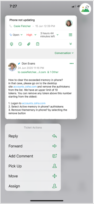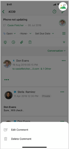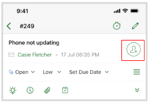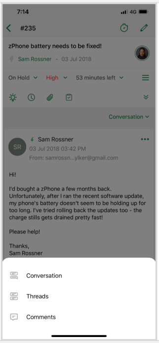 - 問い合わせの下部にある、 [コメント] アイコンをタップします。