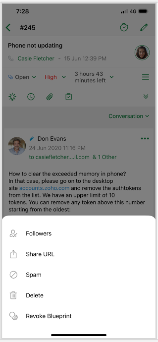 問い合わせのURLを他の担当者に共有したり、 自分の問い合わせのフォロワーとして他の担当者を追加したりできます。