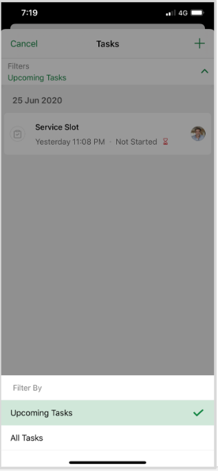 - タスク アイコンをタップすると、 タスク ページが表示されます。