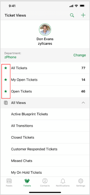 特定の問い合わせ一覧をお気に入りとして設定するには、対象の問い合わせ一覧を左にスワイプし、[星を付ける]を選択します。