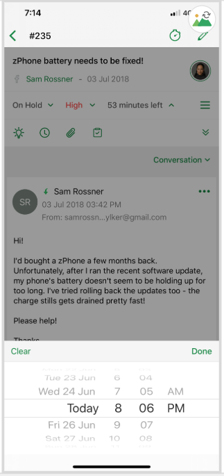 - 未完了の問い合わせで、 [期限を設定する] の選択リストをタップします。