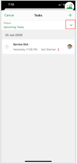 - タスクの一覧ページで右上に表示されているフィルターアイコンをタップします。