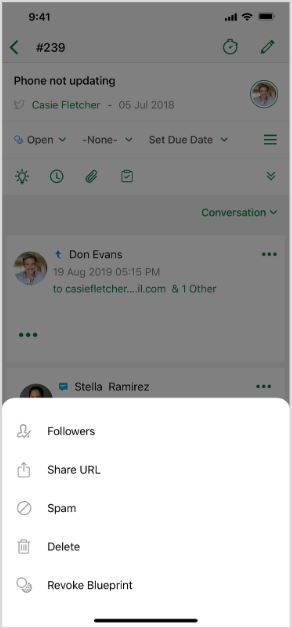 - 問い合わせの下部に表示されている3点マークのアイコン(その他の操作)を選択し、 [ブループリントの適用を解除する] を選択します。