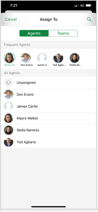 - [割り当てる] をタップすると、 担当者 の選択画面が表示されます。
