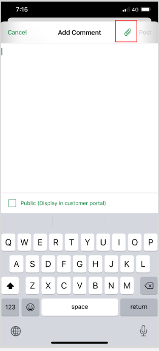 - また、コメントにファイルを添付することもできます。添付するには、コメントの編集画面で、画面の右上にある[添付]アイコンをタップします。