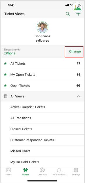 - 表示された部門の一覧から、問い合わせを表示したい部門を選択します。