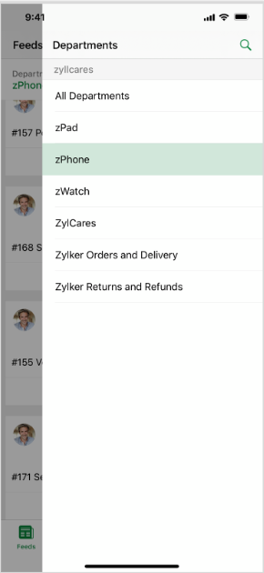 - または、[虫眼鏡]アイコンを選択し、部門名を入力して、検索します。