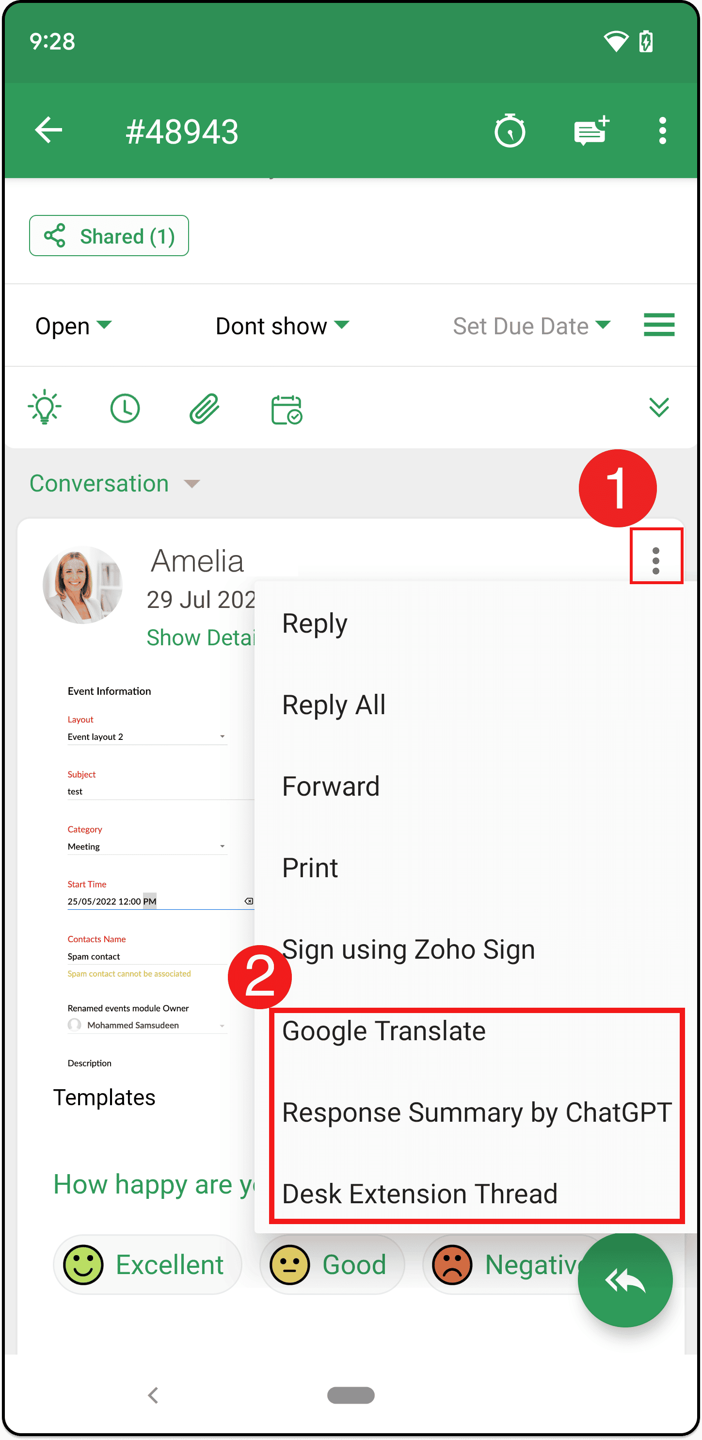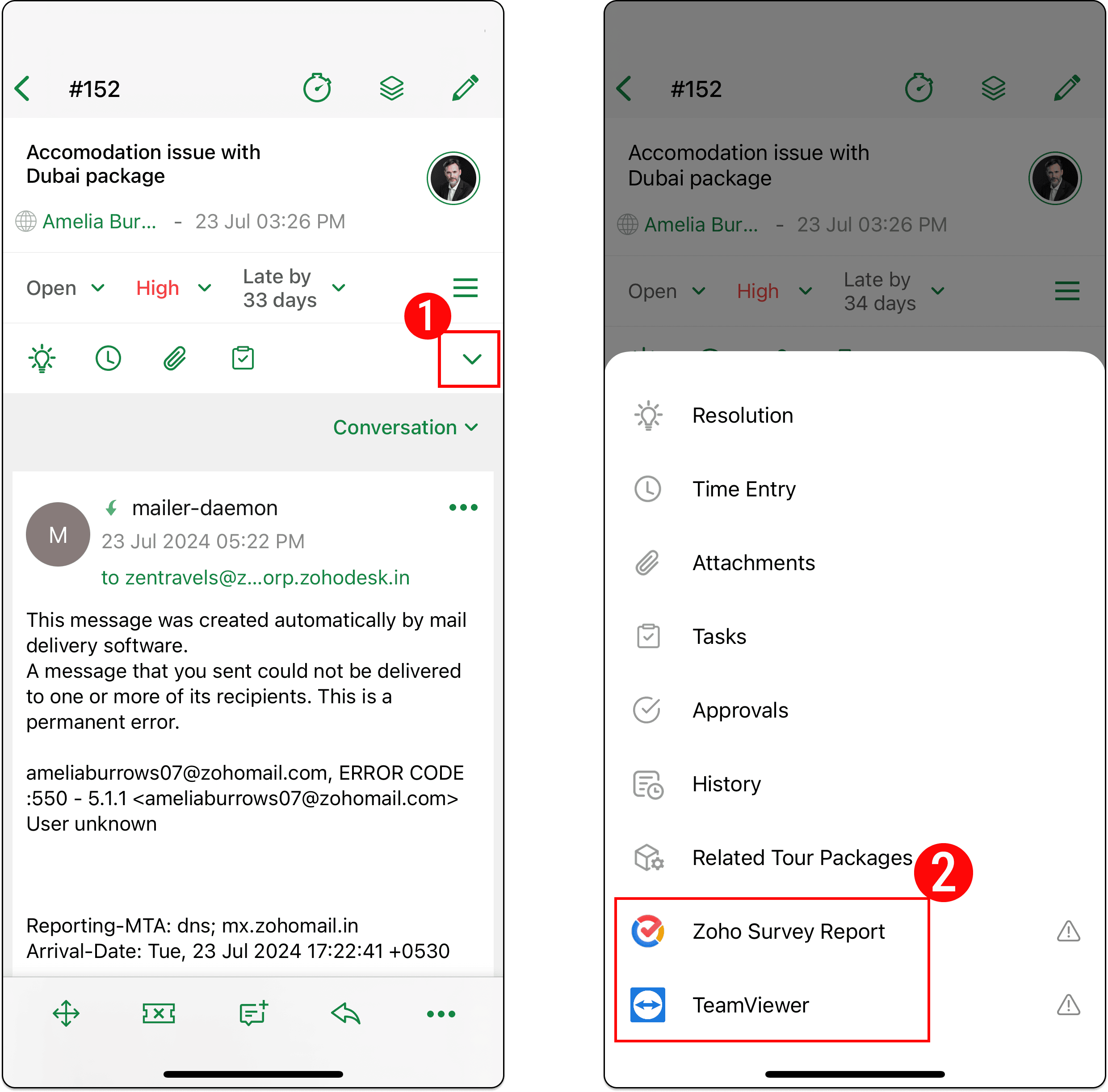 - 問い合わせを開くか、問い合わせに関連するタスクを開きます。