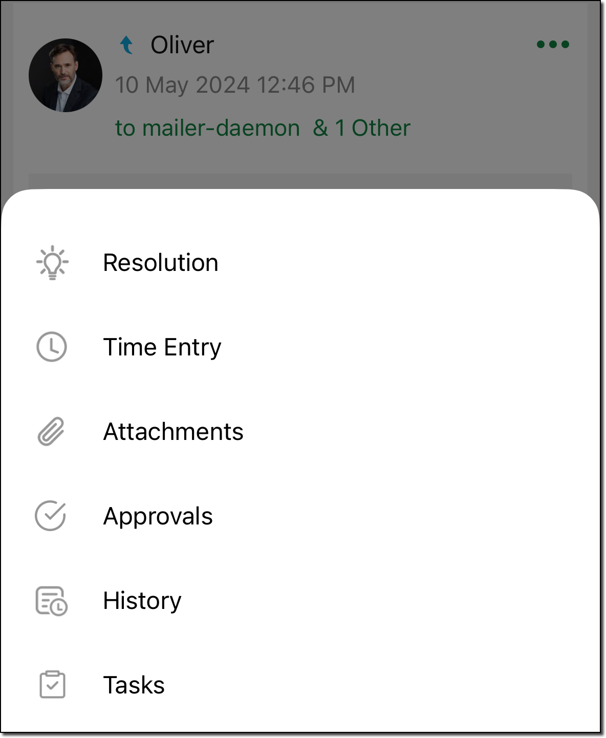 問い合わせの詳細画面で画面右下に表示されている その他(…) アイコンをクリックします。