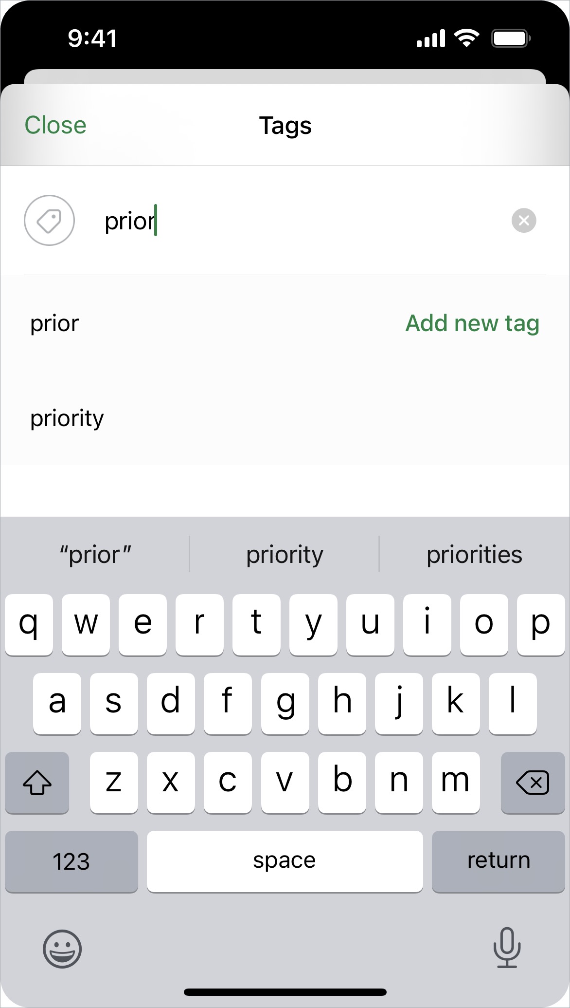 - 新しいタグを作成する場合は、検索欄にタグ名を入力して、 [新しいタグを追加] を選択します。