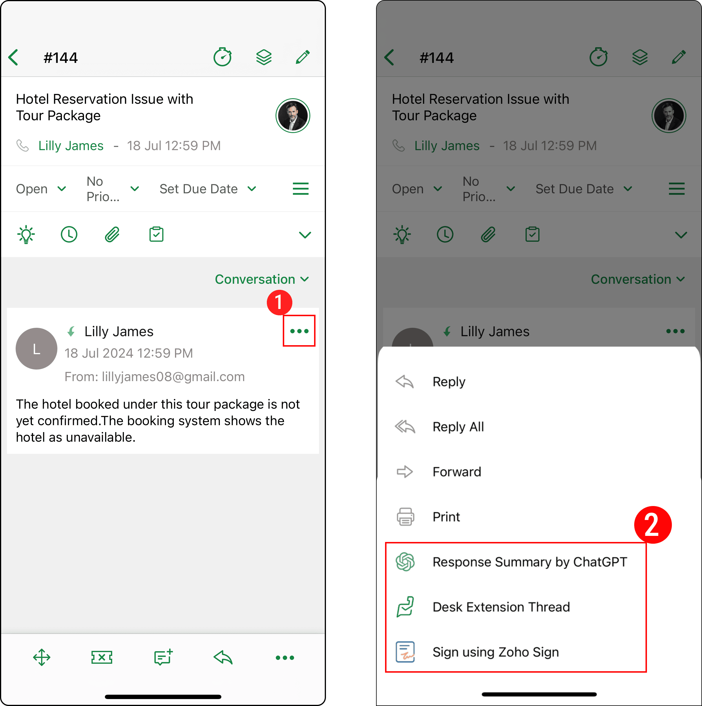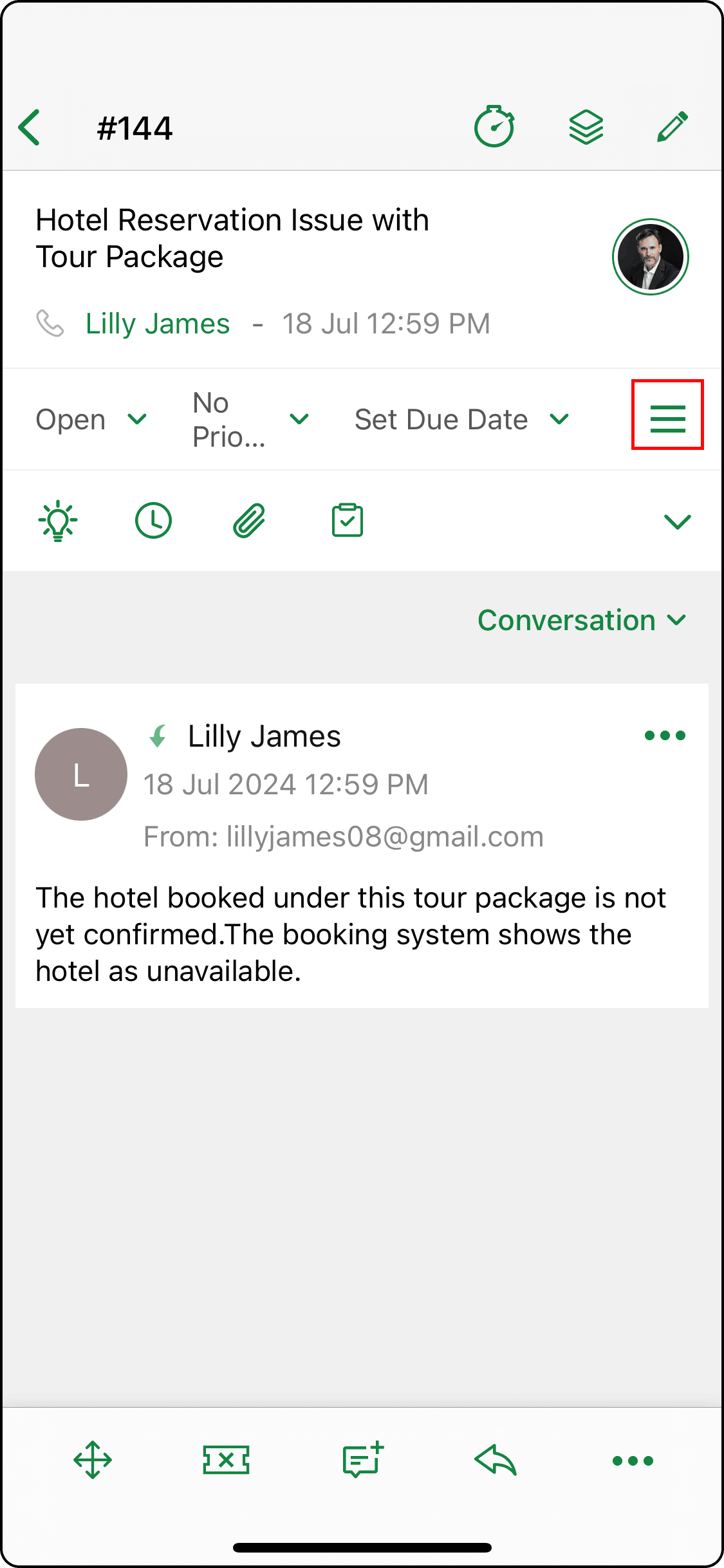 - 問い合わせの下部にある3点マークのアイコン(その他の操作)をタップします。