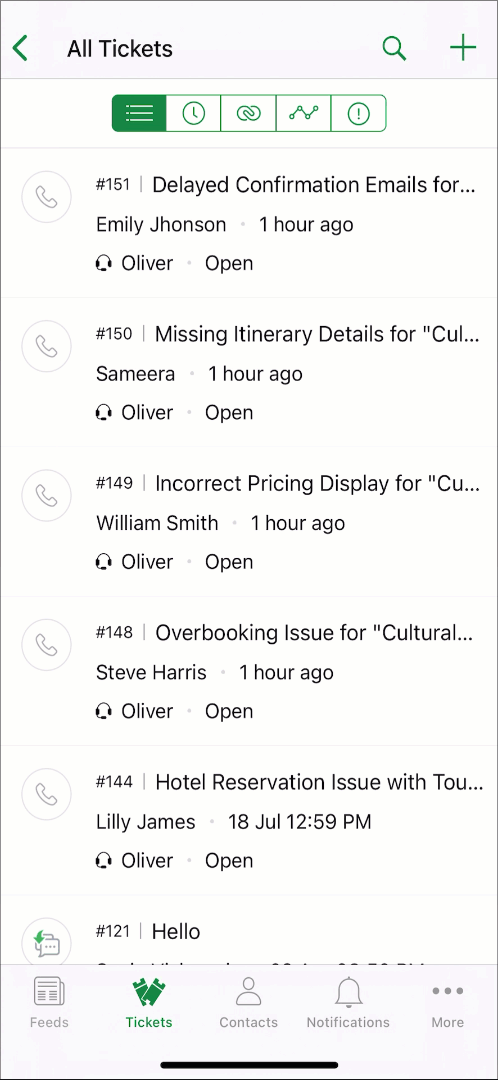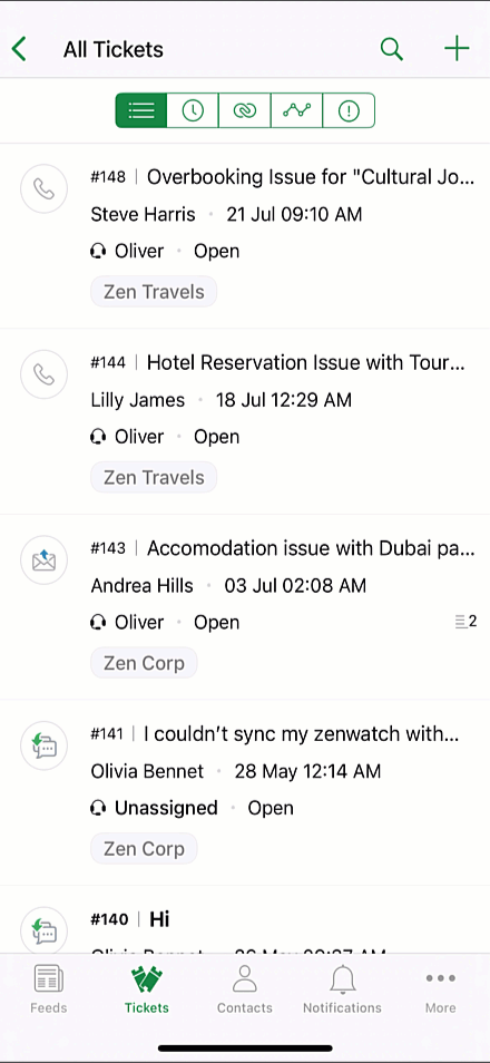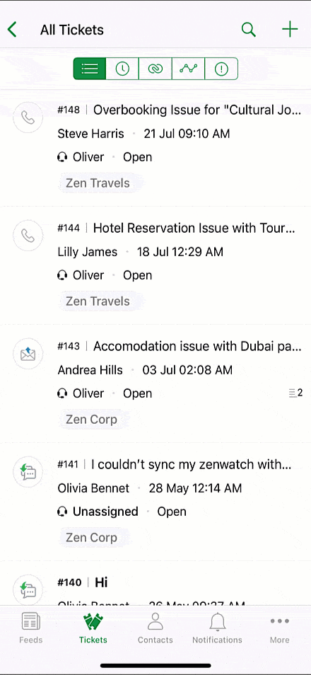 iOS向けのZoho Deskアプリでは、以下の操作を実行できます。