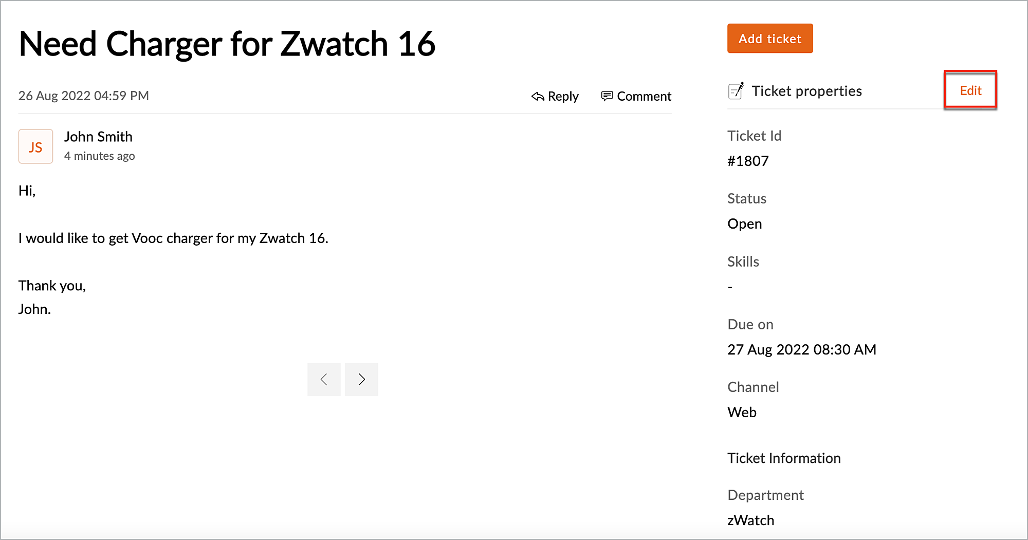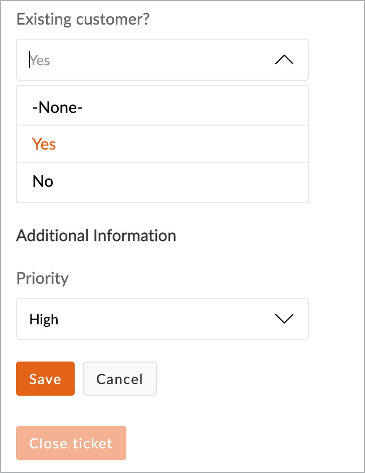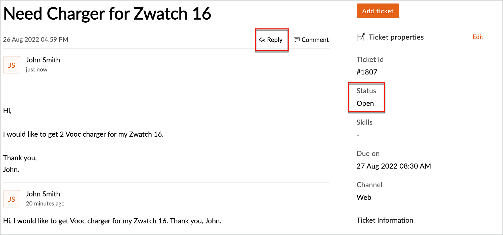 初期設定では、[すべての部門]と[すべての経路]の問い合わせが一覧表示されます。フィルター条件を指定して、該当の問い合わせをすばやく見つけることができます。たとえば、顧客はフィルターを使用して 「 技術サポート 」の部門と「 メール 」の経路を選択することで、対応が必要な問い合わせをすばやく絞り込むことができます。フィルターを適用すると、一覧にはメールによる技術サポートに関する問い合わせのみが表示されます。
