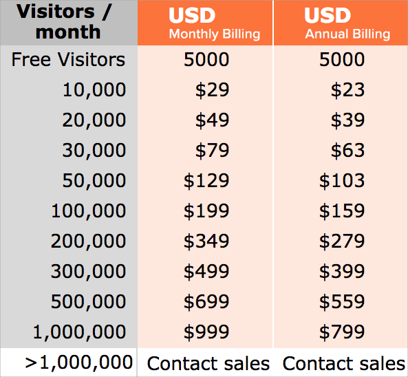 はい、いつでも可能です。追跡する訪問者の数に応じて、Zoho PageSenseで追加プランを購入する必要があります。追加プランの費用は以下のとおりです: