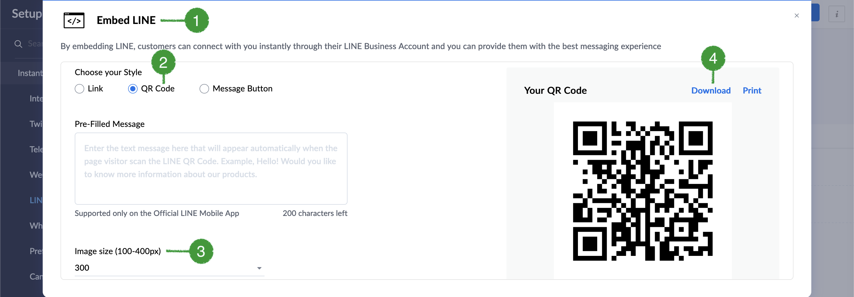 [QRコード]を選択すると、QRコードが自動で作成されるので、[ダウンロードする]をクリックして画像をダウンロードします。後は、ダウンロードしたQRコードの画像を、自社サイトに掲載するだけです。また、QRコードを店頭に掲示して、顧客が店頭からすぐに担当者とのLINEのやりとりを開始できるようにすることも可能です。