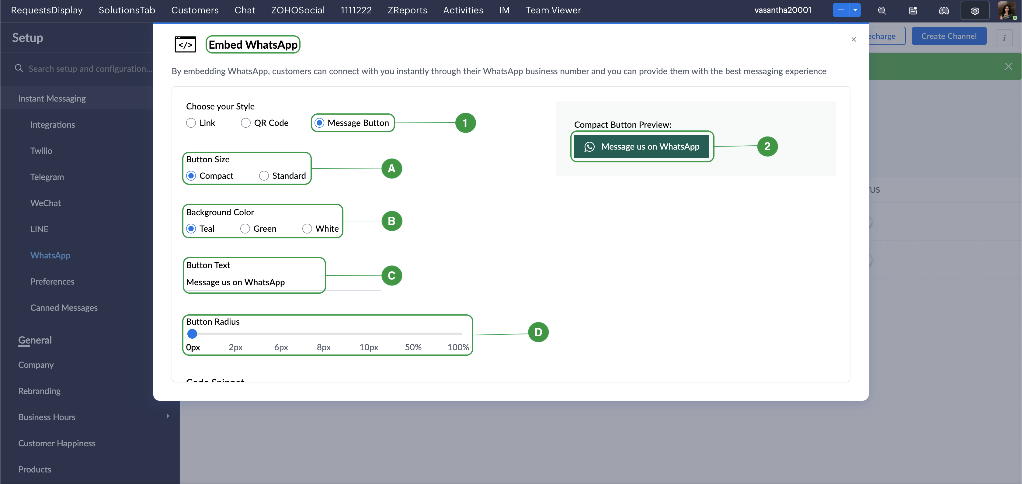 WhatsAppは、世界で最もユーザー数の多いメッセンジャーアプリです。近年、チャットサポートなど、顧客が担当者にその場ですぐに問い合わせできるサービスの導入が盛んです。Zoho Deskでは、こうしたニーズに対応できるよう、WhatsAppユーザー向けに、自社のWebサイト上にWhatsAppのチャット開始ボタンを設置できます。これにより、Webサイト訪問者は、サイトから直接、WhatsAppのチャットを開始し、不明点やフィードバックを営業/サポート担当者とやりとりできるようになります。この記事では、Zoho DeskでWebサイトにWhatsAppのチャット開始ボタンを設置する方法をご紹介します。