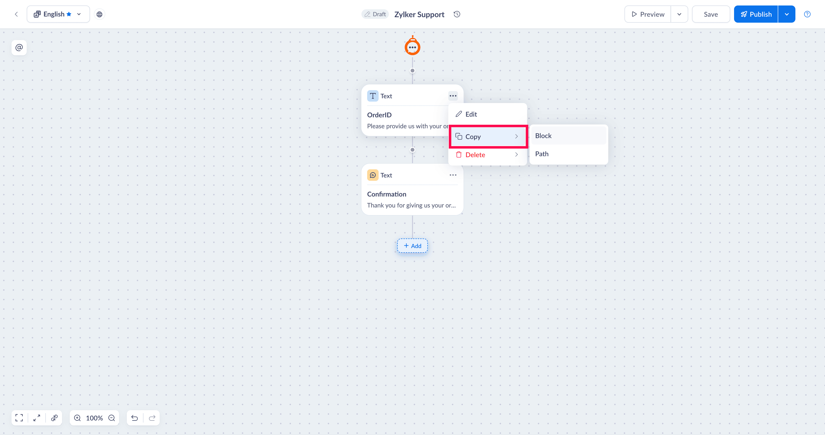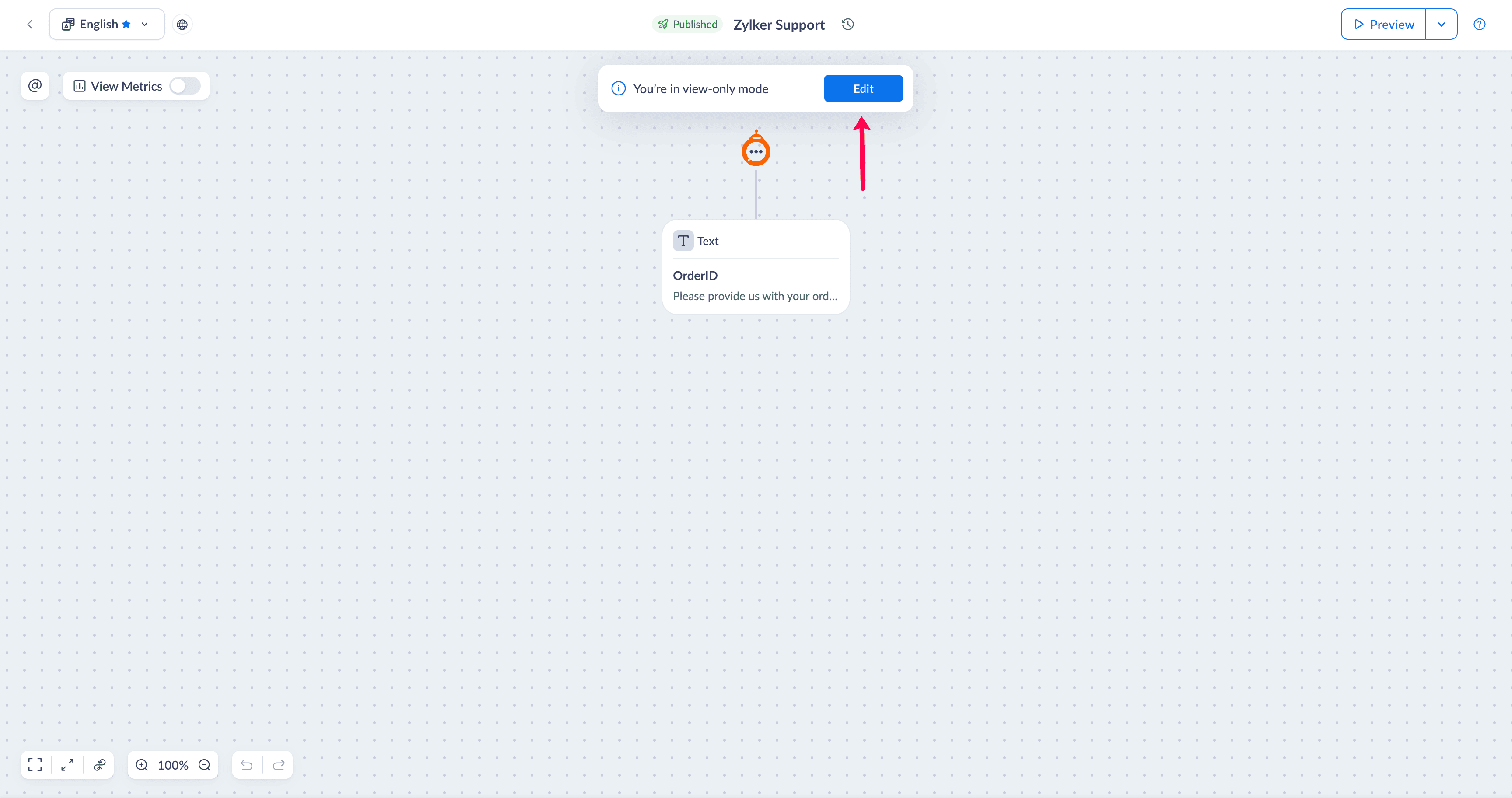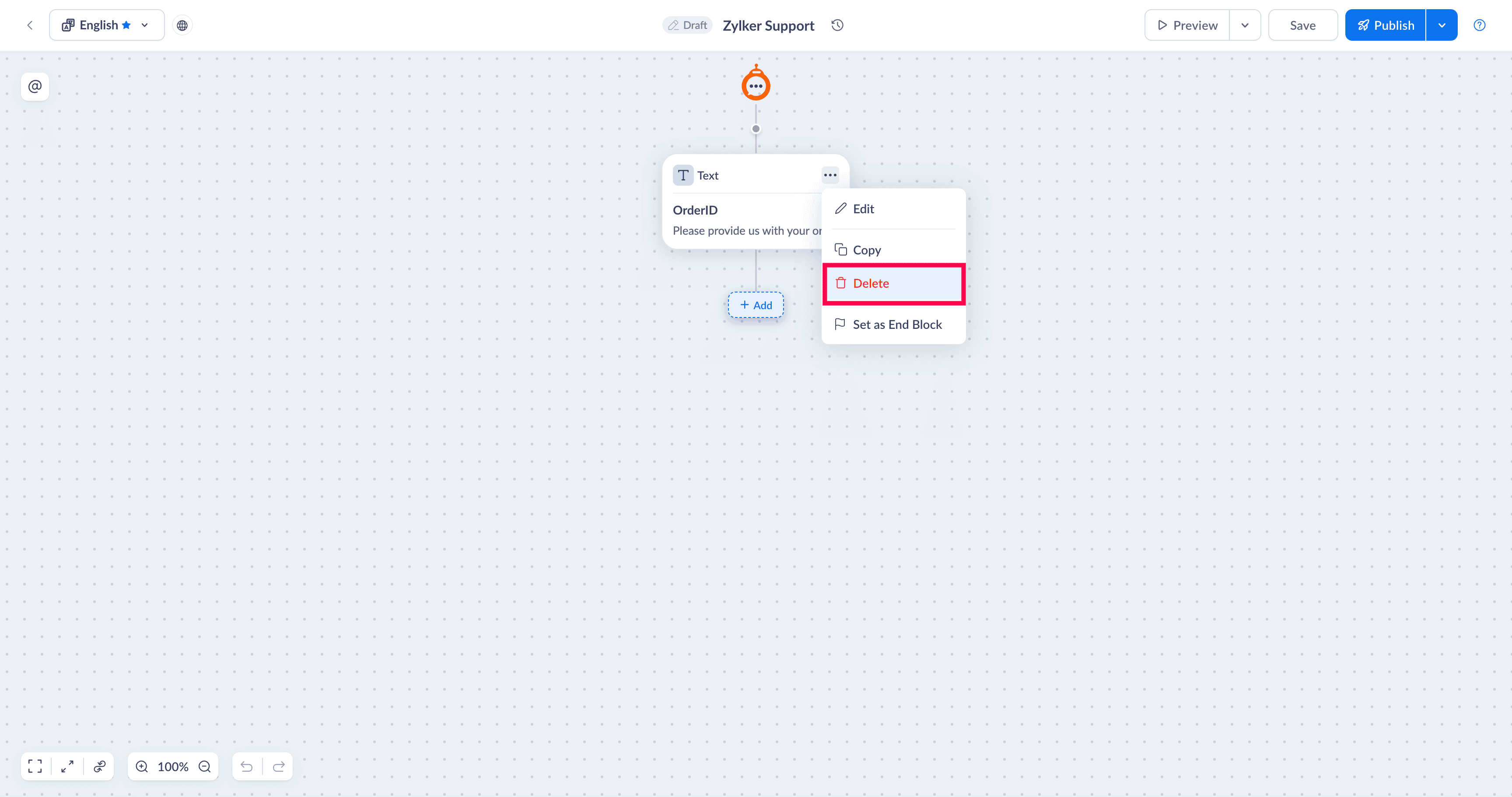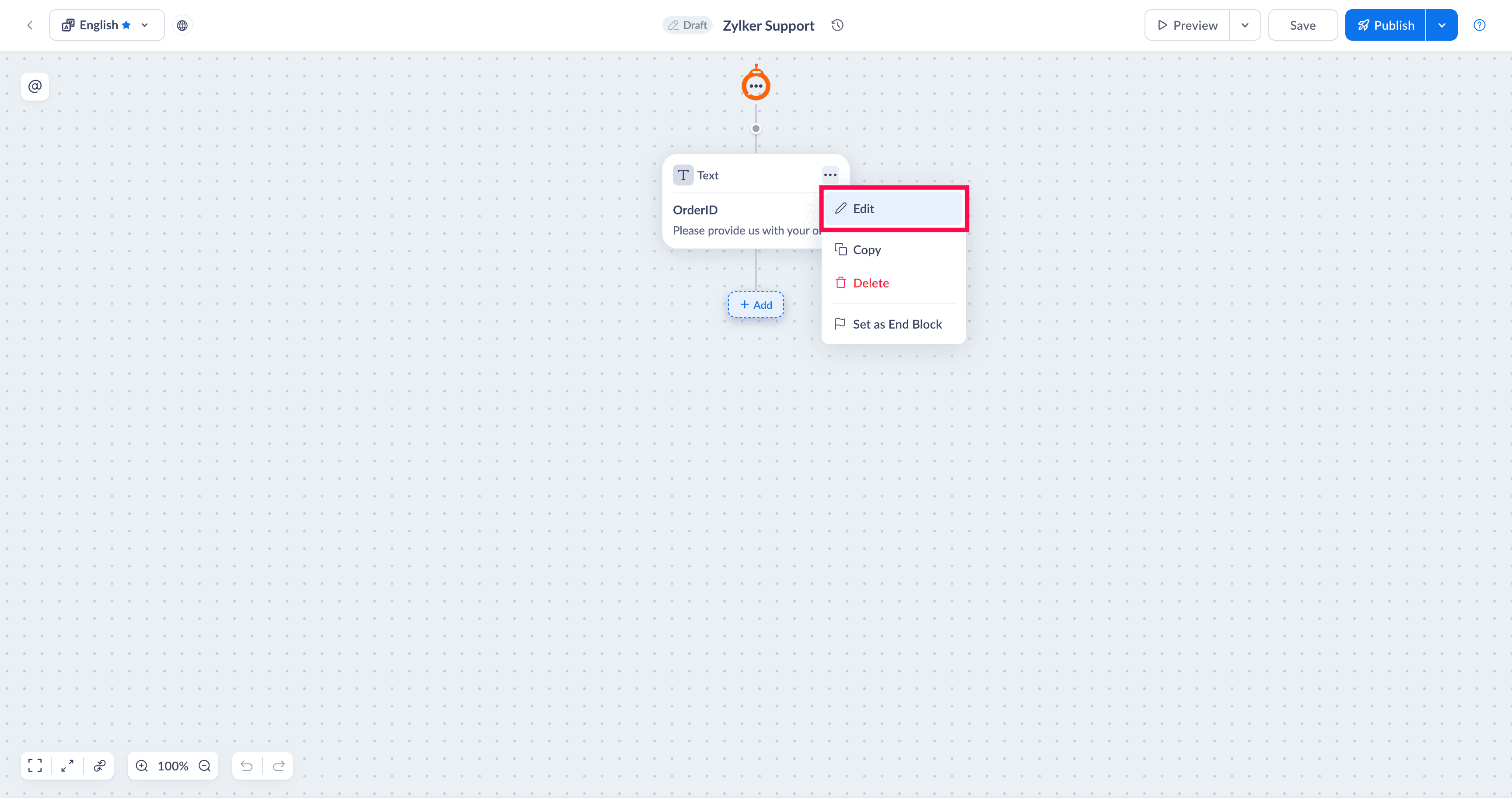 必要に応じてテキストブロックを編集できます。自動ガイドボットのフローが公開中、または下書きであっても編集可能です。編集するには、以下の手順を実施します。