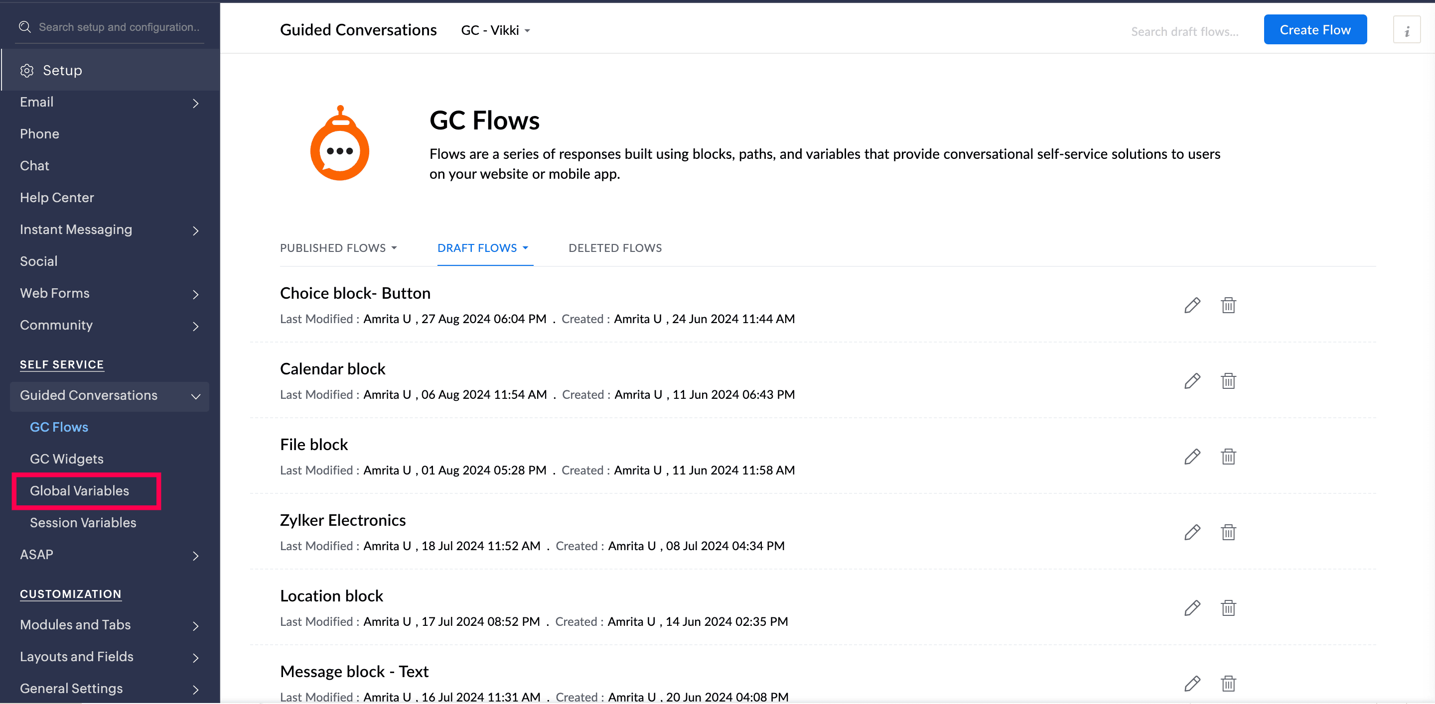 共通変数は、組織内のすべての部門のフローで共通して使用可能です。