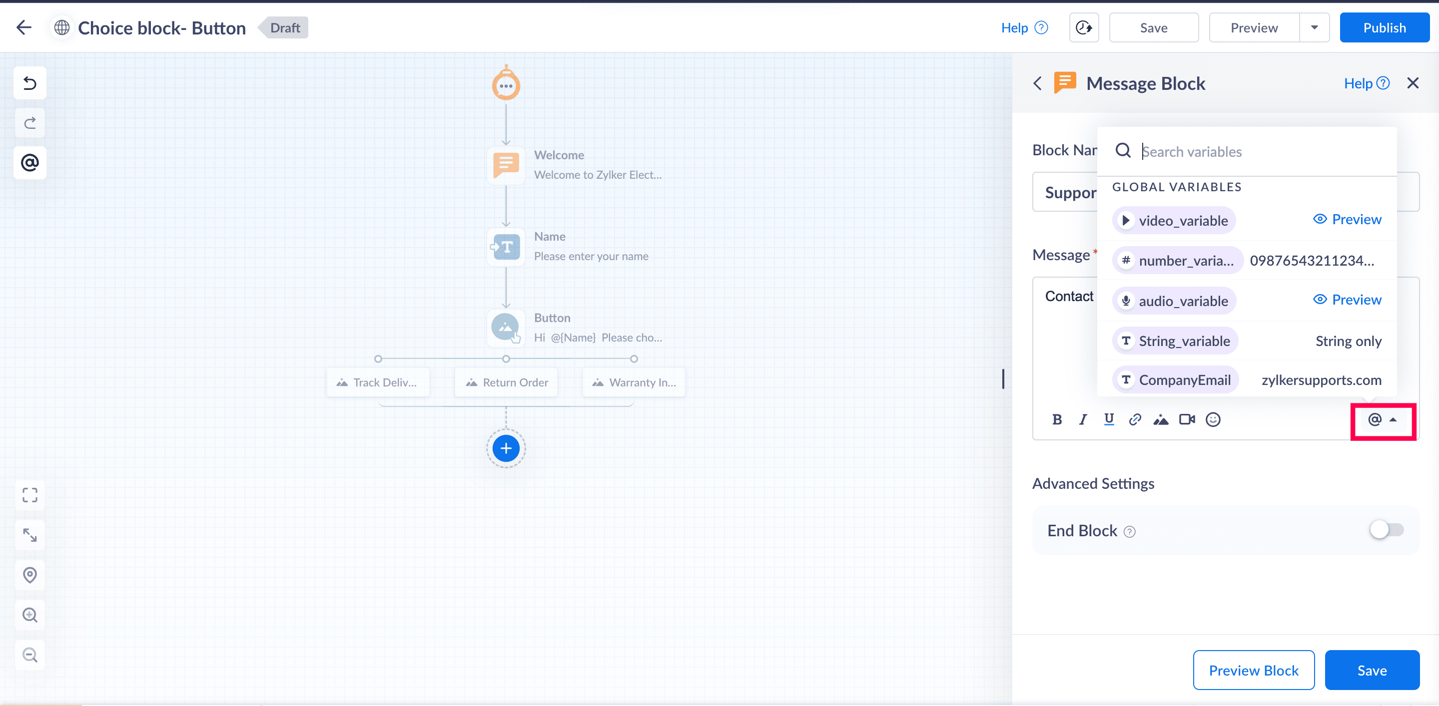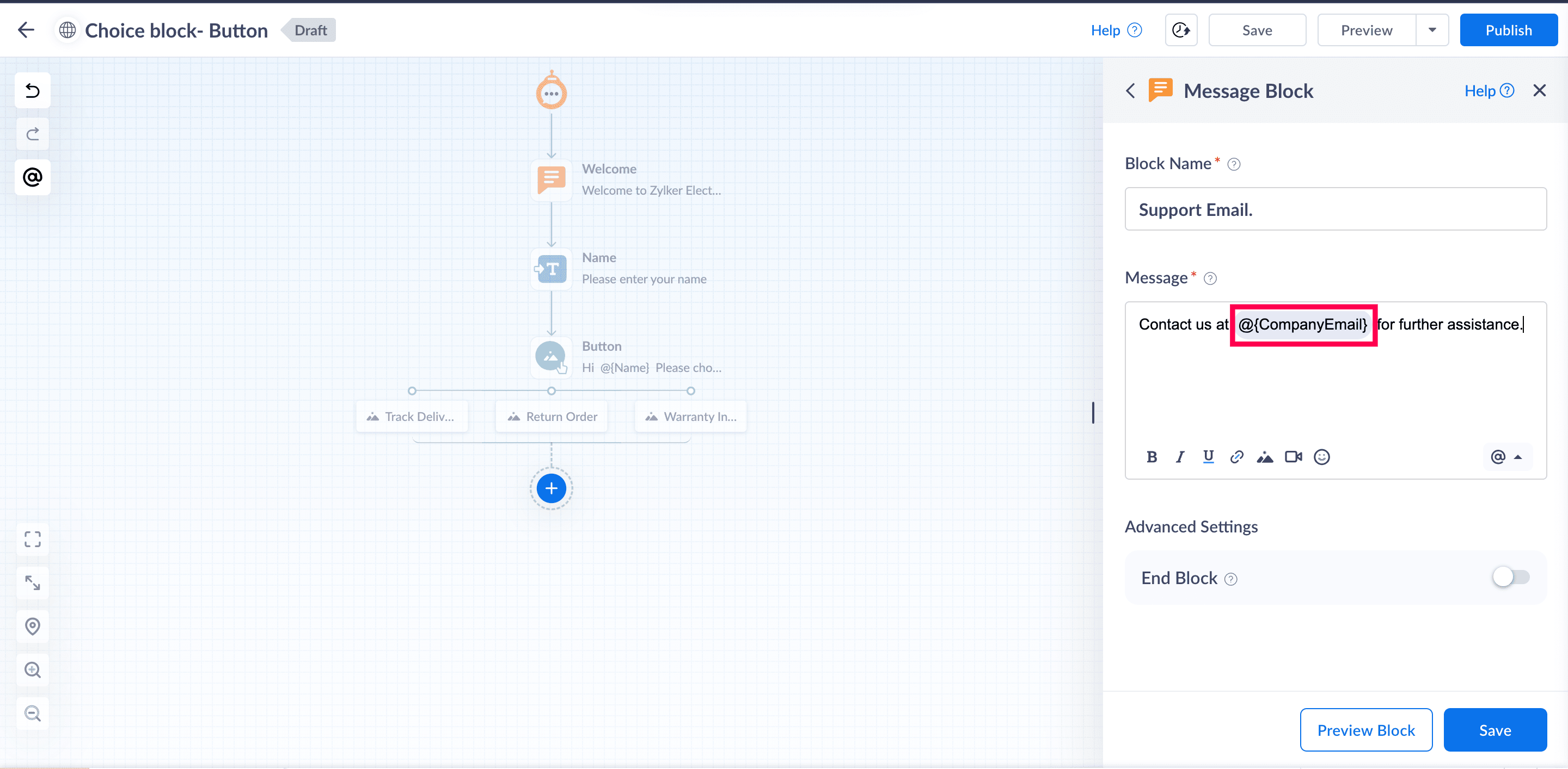 3. 使用頻度の高いURLの表示:組織のWebサイト、よくある質問ページ、ヘルプセンターなど、使用頻度の高いURLを共通変数として保存することで、組織の自動ガイドボットのフロー内で簡単に使用することができます。