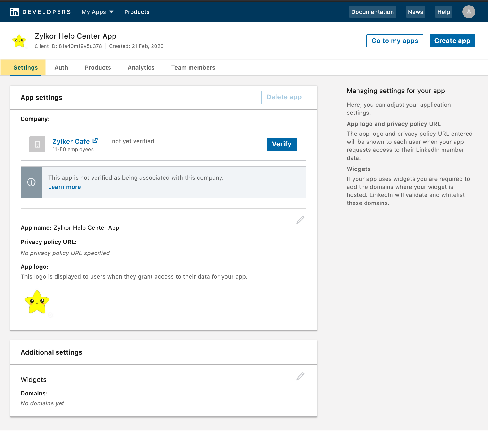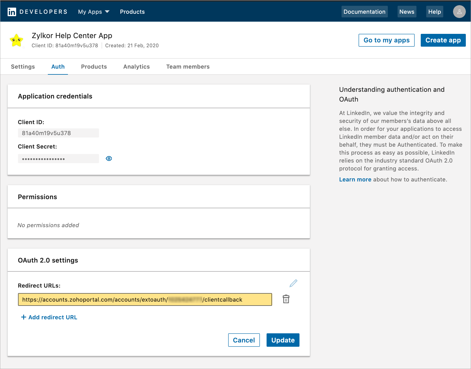 - LinkedInの開発者用サイトにサインインします。