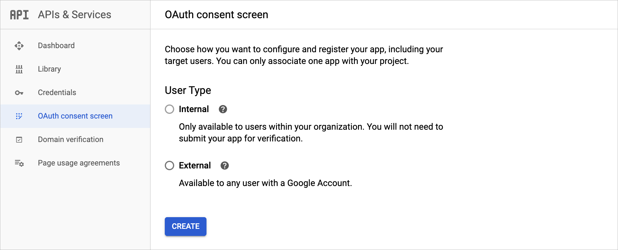 - [APIとサービス]のメニューで、[OAuth同意画面]をクリックします。