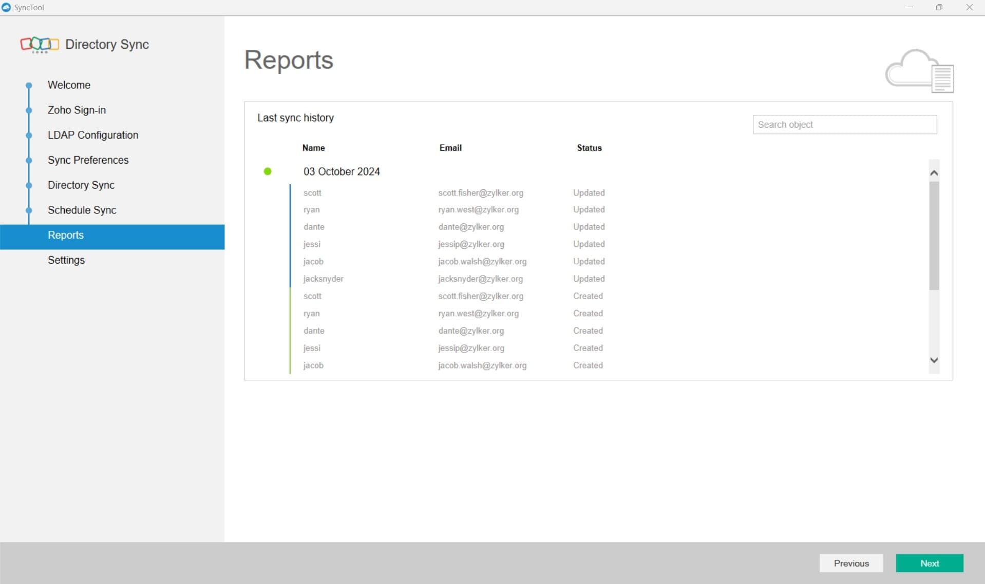 Syncツールに再割り当て担当者ボタンを使用してZoho Sign-in画面から再度ログインし、再度同期を行ってみてください。問題が解決しない場合は、Syncツールのログファイルを添えてサポート@zohodirectory。comまでお問い合わせください。