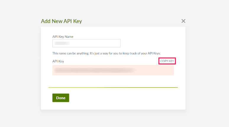作成した APIキー をコピーしてください。これは Zoho Directory の設定に必須です。完了したら 完了 をクリックします。