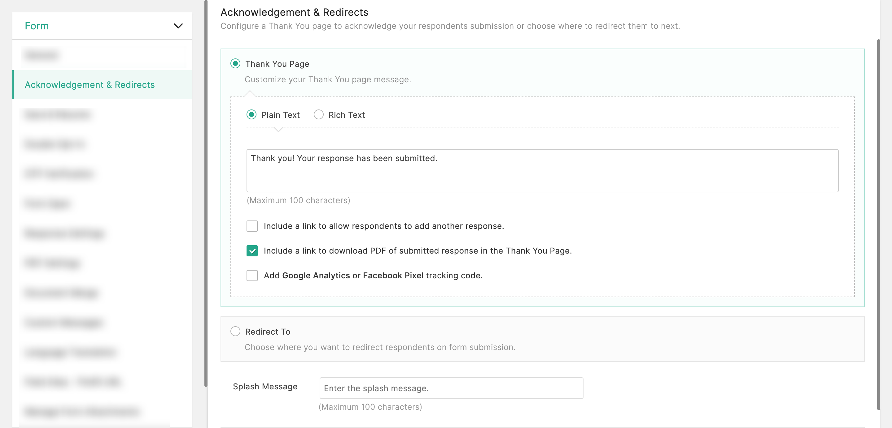 - PDFクレジットが使い果たされた場合、サンクスページからレスポンスをPDFとしてダウンロードリンクが削除されます。