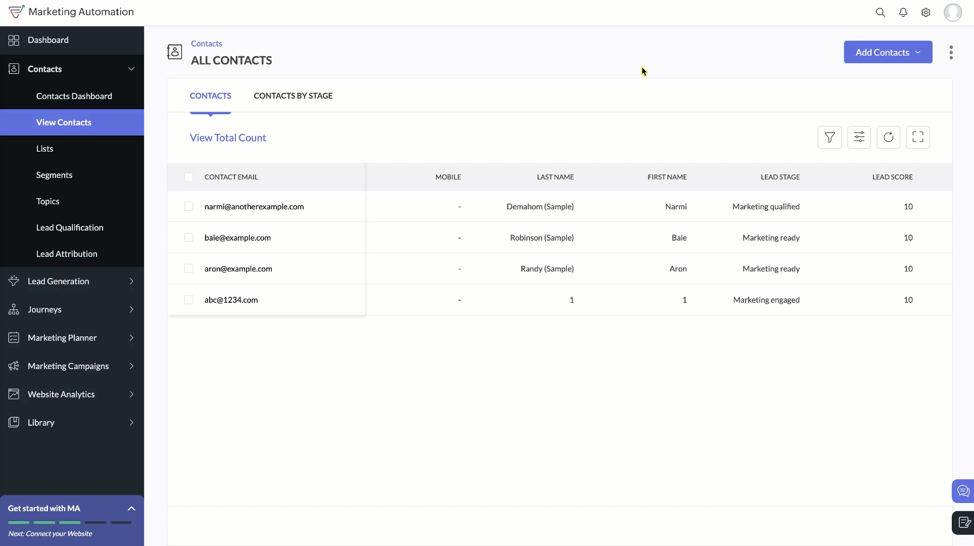 1. 左側のナビゲーションツールバーから連絡先をクリックし、連絡先を表示を選択します。