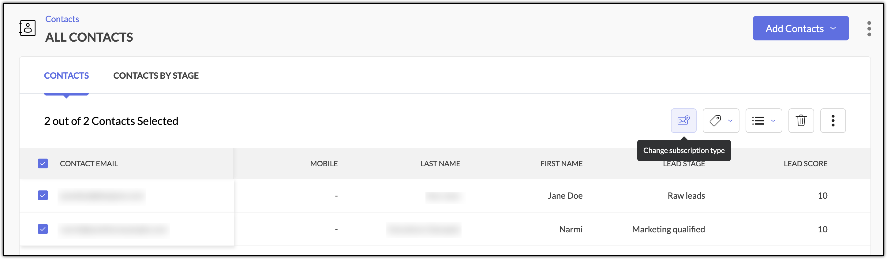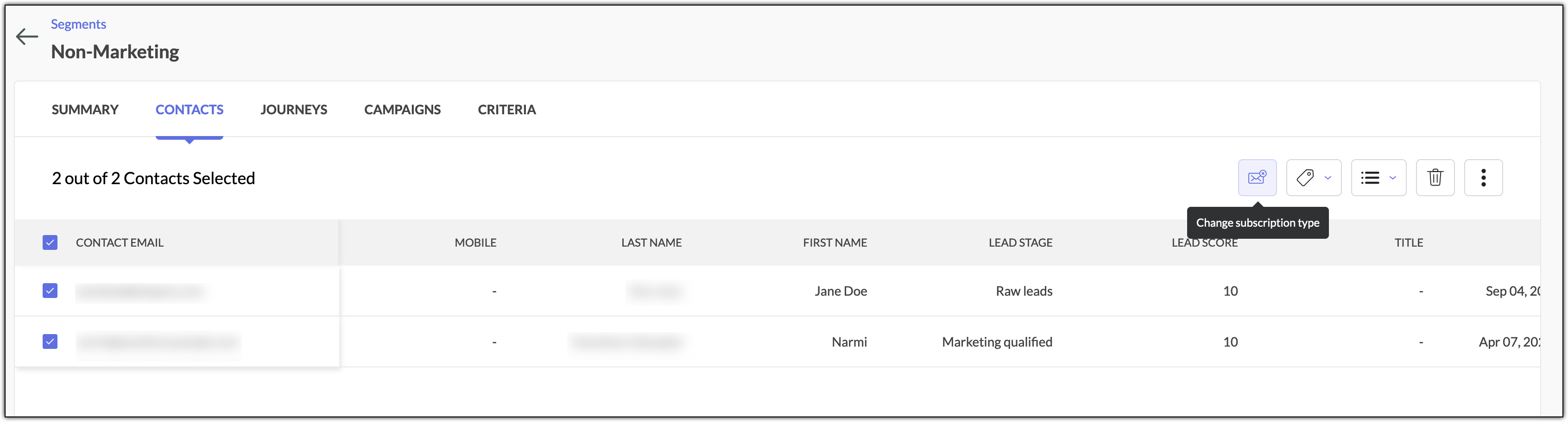 連絡先のサブスクリプションタイプを非マーケティングからマーケティングに変更する方法
