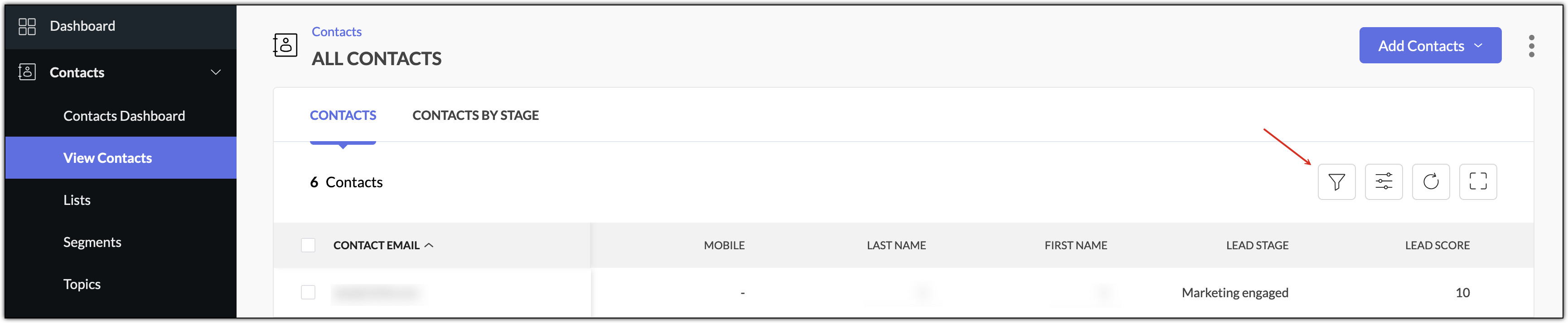 1. 連絡先を左側のナビゲーションツールバーからクリックし、Segmentsを選択します。