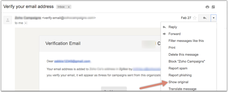 9. メールの詳細なHTMLソースを表示するには、完全なコンテンツを表示オプションをクリックしてください。