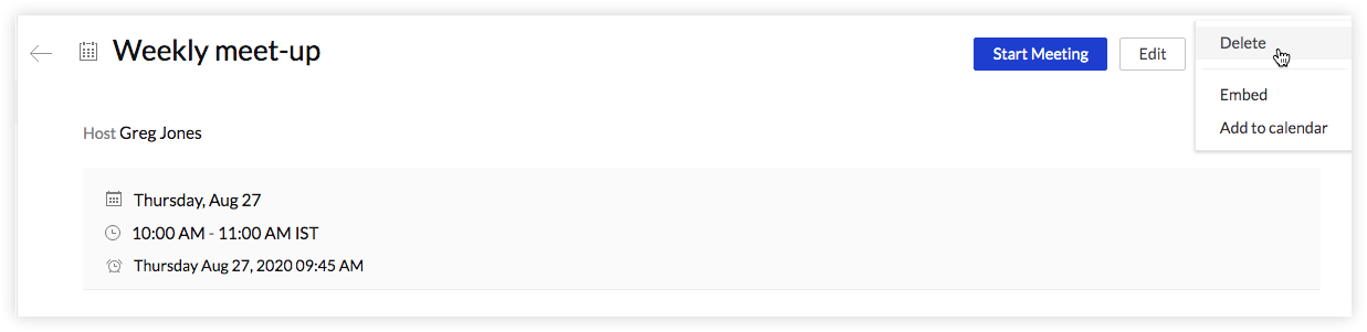 3. 右側の その他の操作  アイコン( )をクリックして、 [削除] を選択します。すべての登録者には、キャンセルについて通知するメールが送信されます。