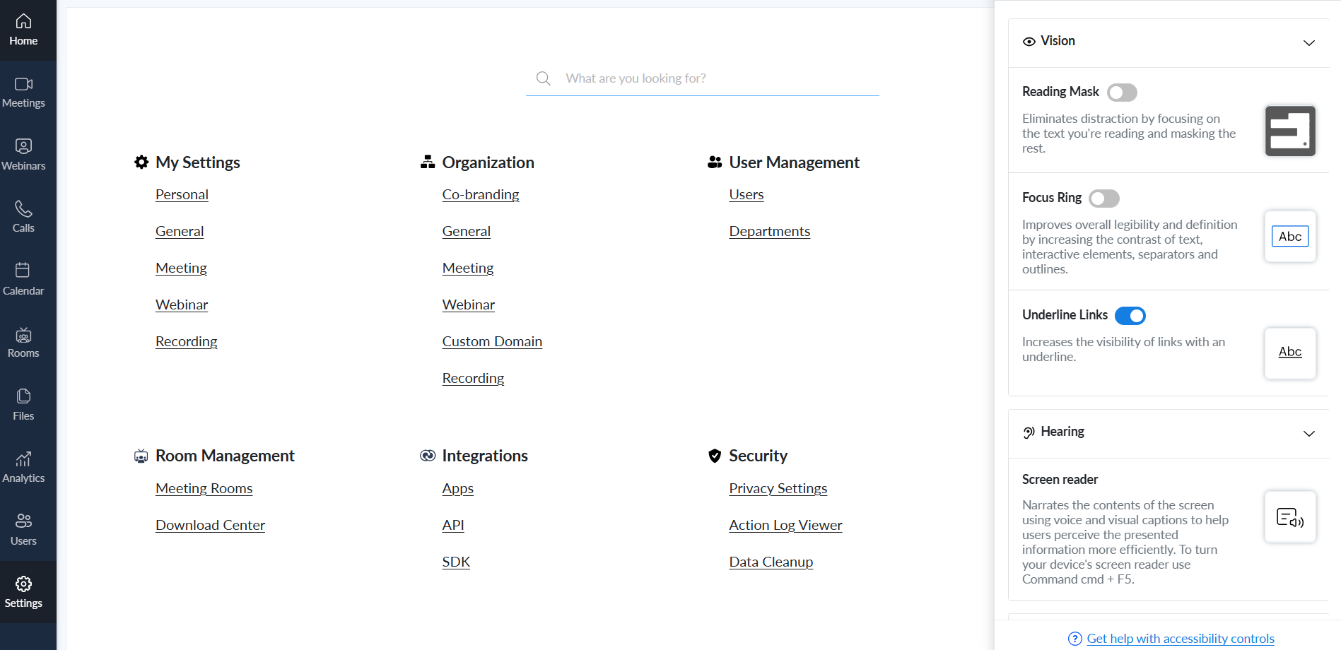• Zoho Meetingにおけるアクセシビリティコントロール