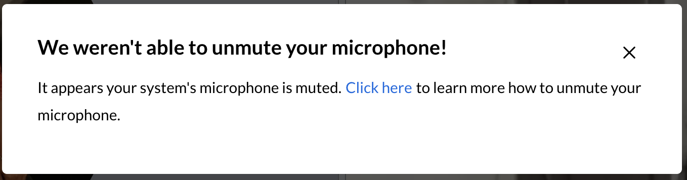 コンピューターのOSの設定で、Zoho Meetingによるマイクの使用が許可されていない可能性があります。なお、Zoho Meetingでは、OSの設定によって参加者のマイクがミュートになっている場合、主催者に通知されます。