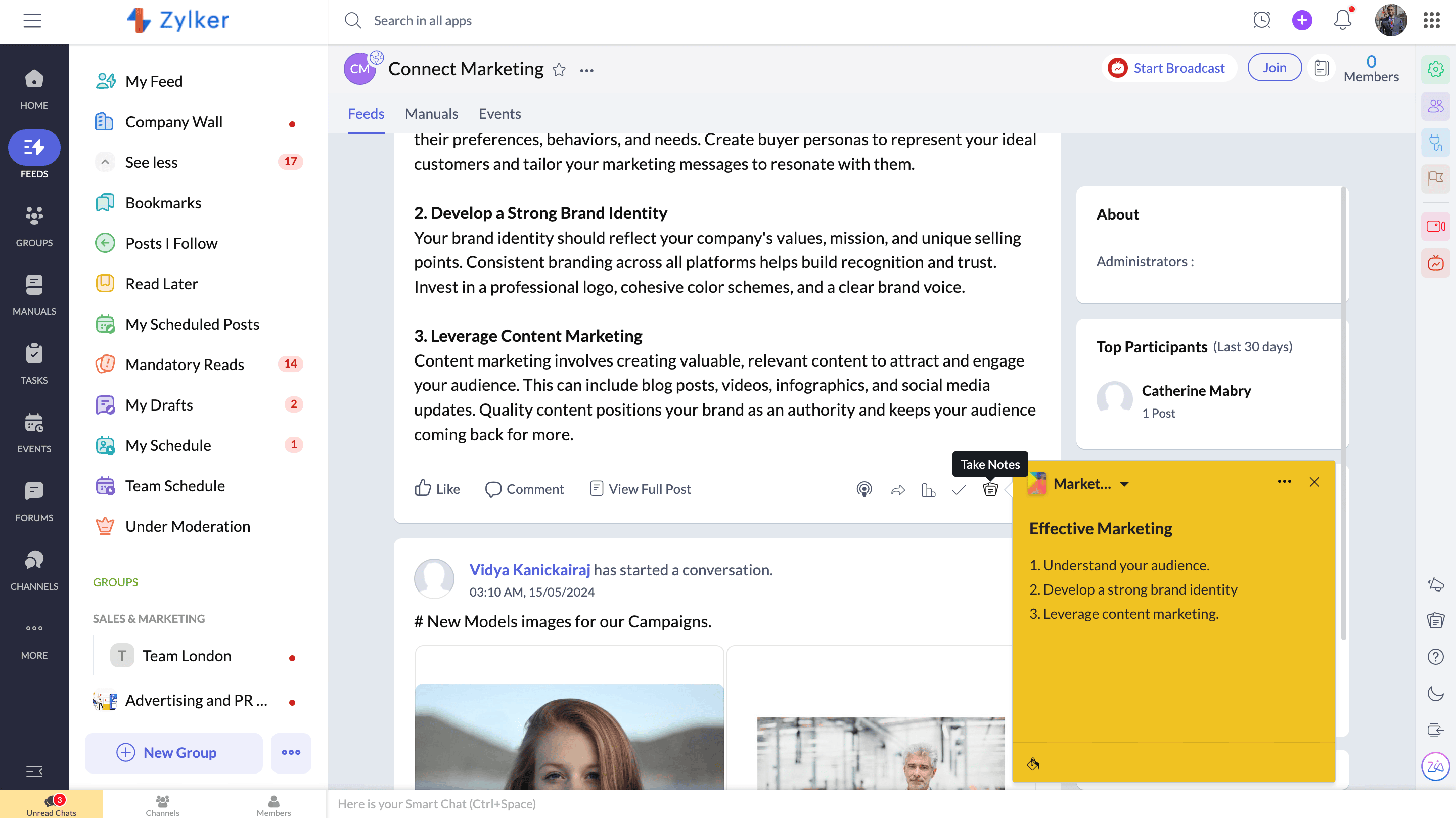 Zoho Notebookは、すべてのZoho Connectユーザー向けの主要なメモ作成アプリです。接続内でメモを作成したり、投稿にメモを関連付けたり、この連携機能を利用してさらに多くの操作が可能です。