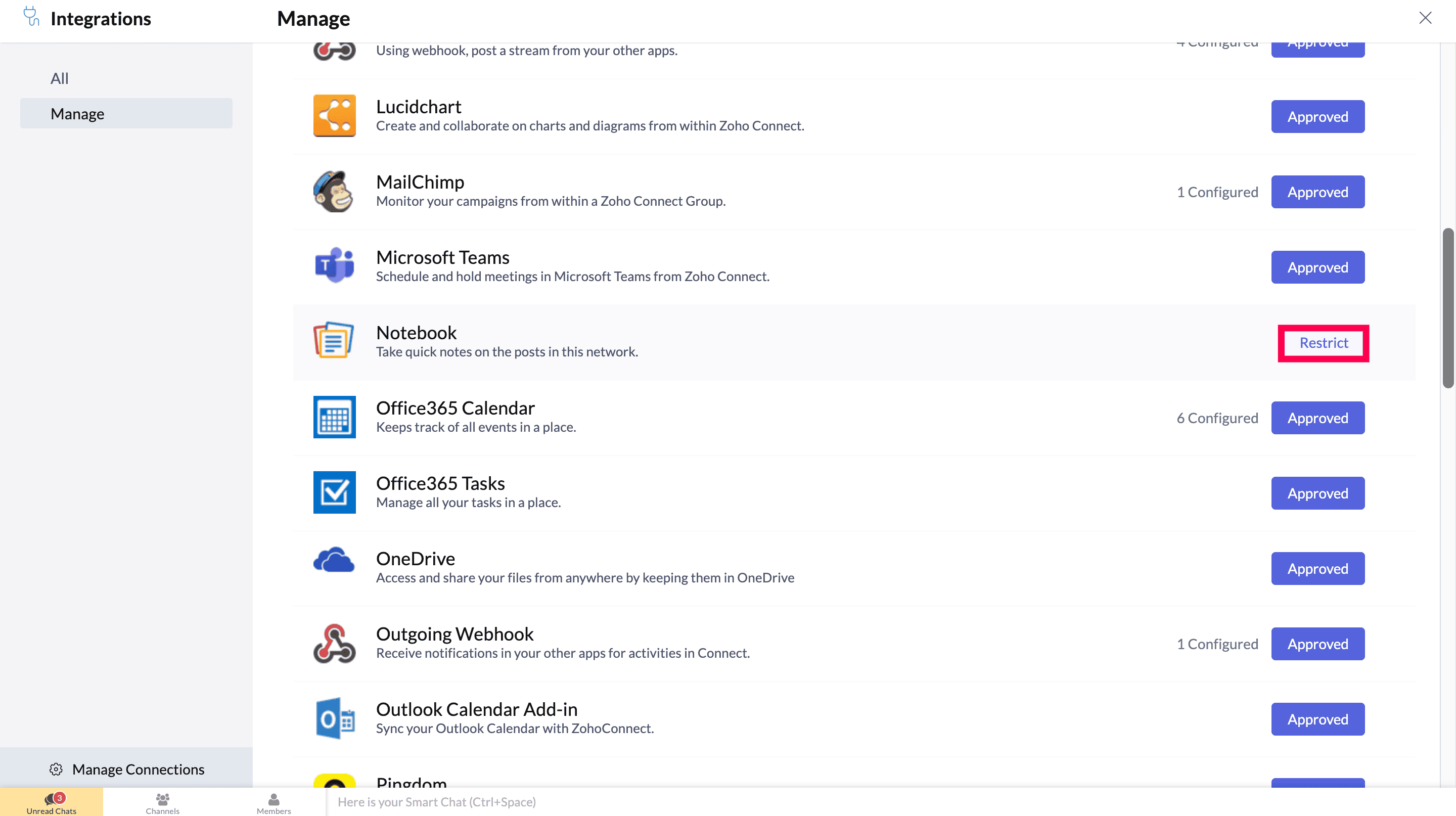 3. Zoho Connectの組織やネットワーク管理者には、ユーザー向けにNotebookを有効・無効にする権限があります。