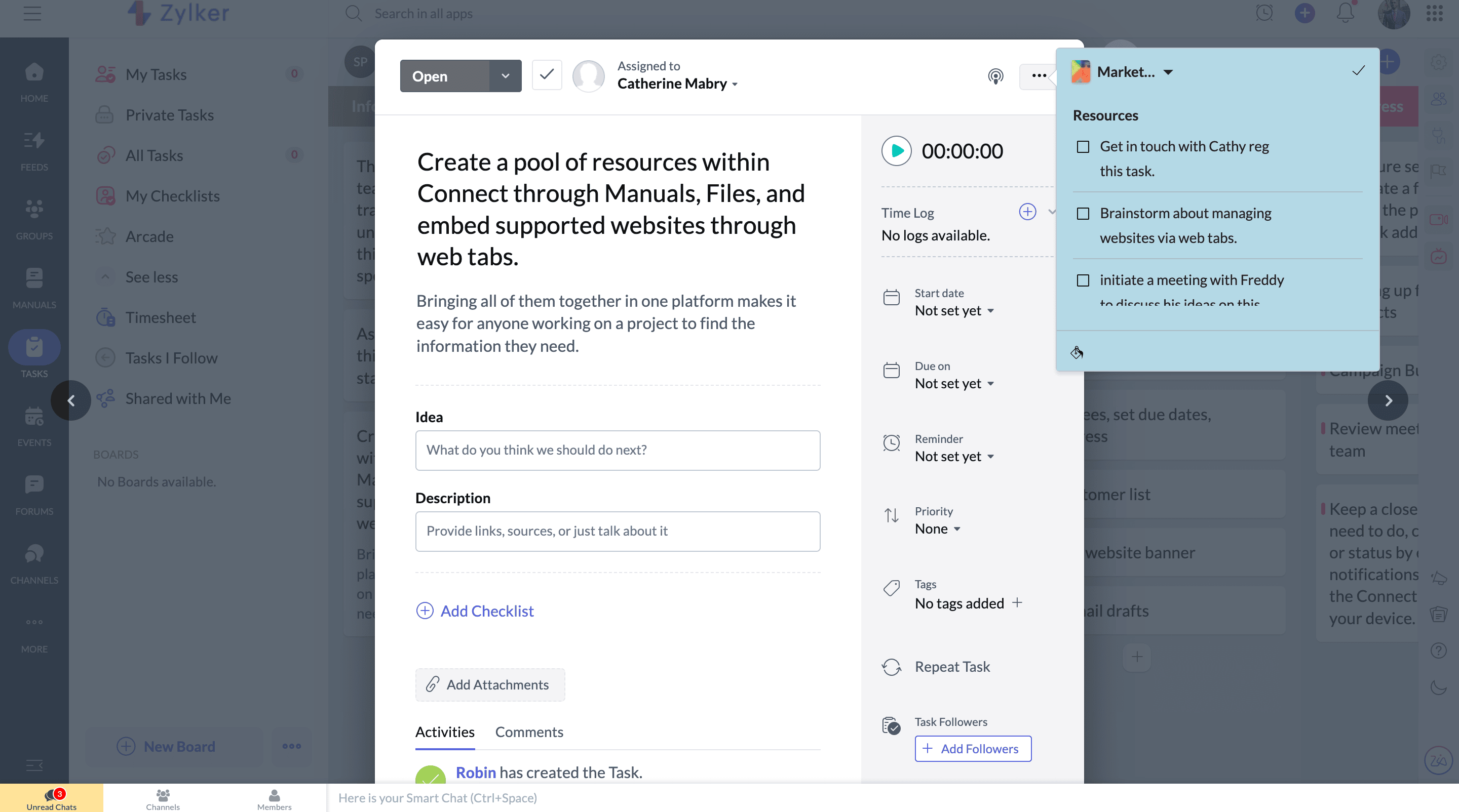 重要なタスク担当者をZoho Connectで見逃していませんか?Zoho Notebookのメモ機能をご活用ください。Zoho Notebookは、あらゆるメモ作成を一元管理できるプラットフォームであり、多彩な機能により生産性を向上させます。一方、Zoho Connectは社内コミュニケーションや従業員エンゲージメント、コラボレーションを促進するための統合型イントラネットソリューションです。両方のサービスがシームレスに統合され、より便利にご利用いただけます。