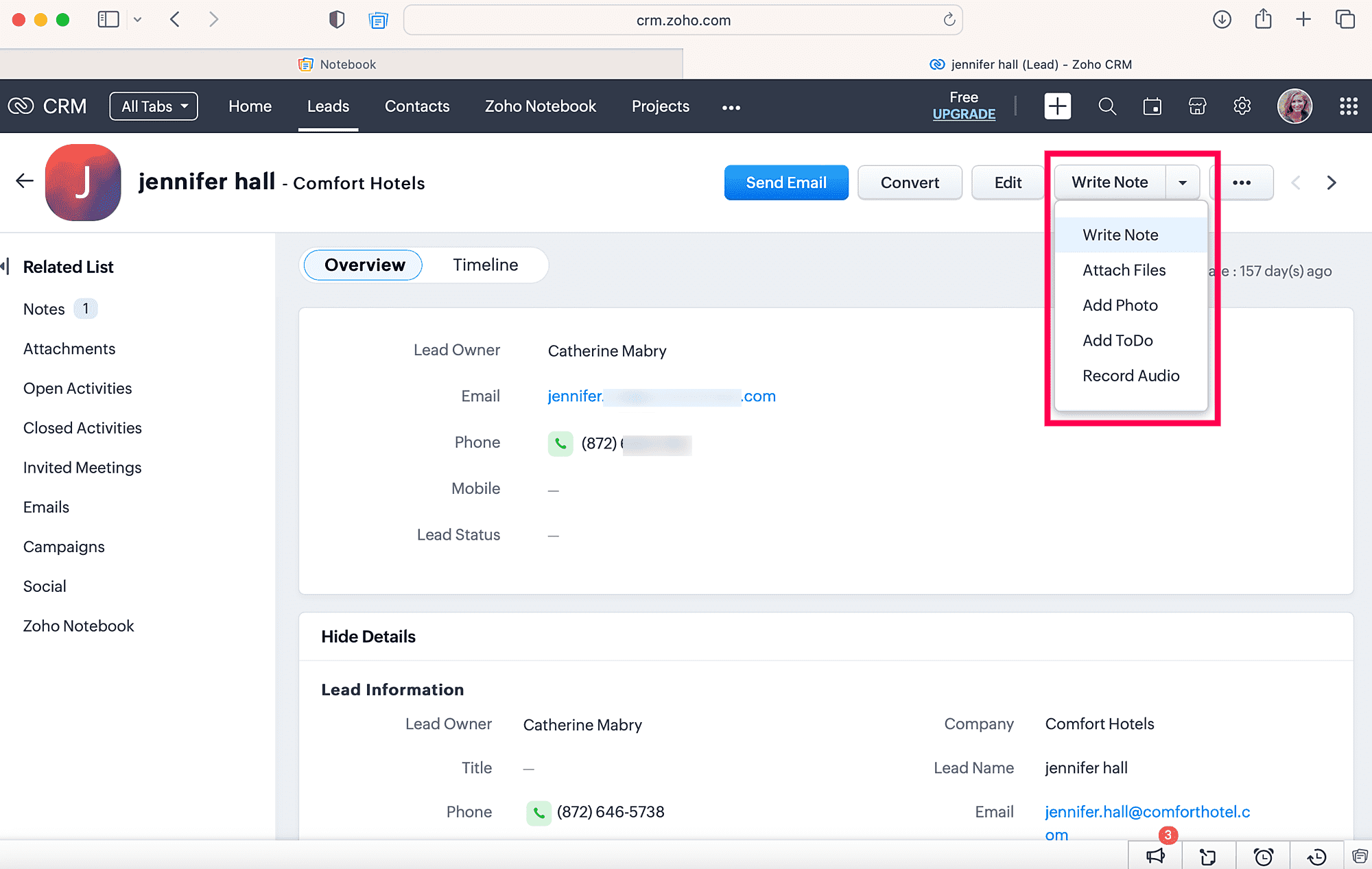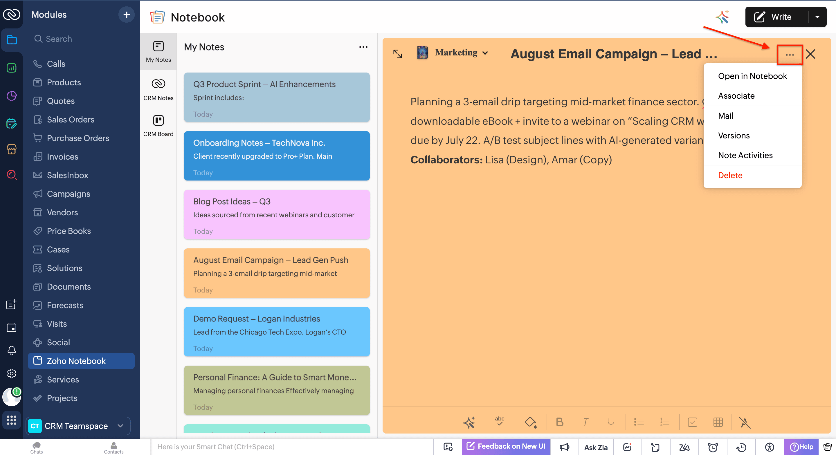 Zoho CRMでZoho Notebookにアクセスし、使用する方法:
