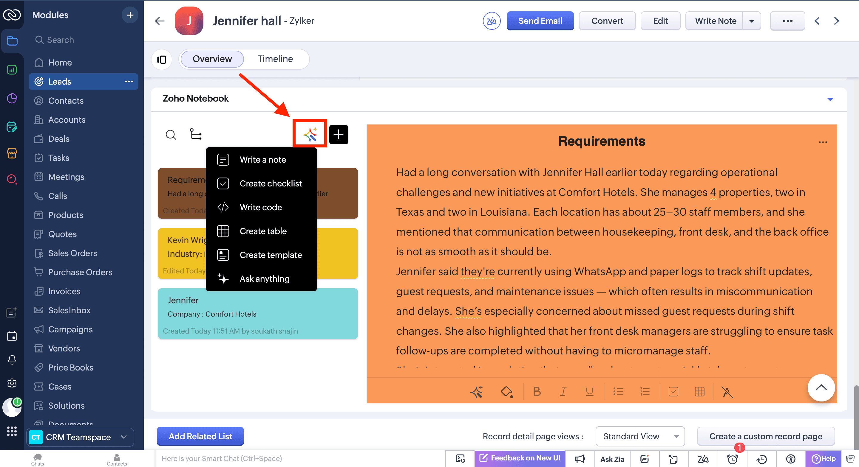 Zoho Notebook CRMでNotebook AIを利用する方法