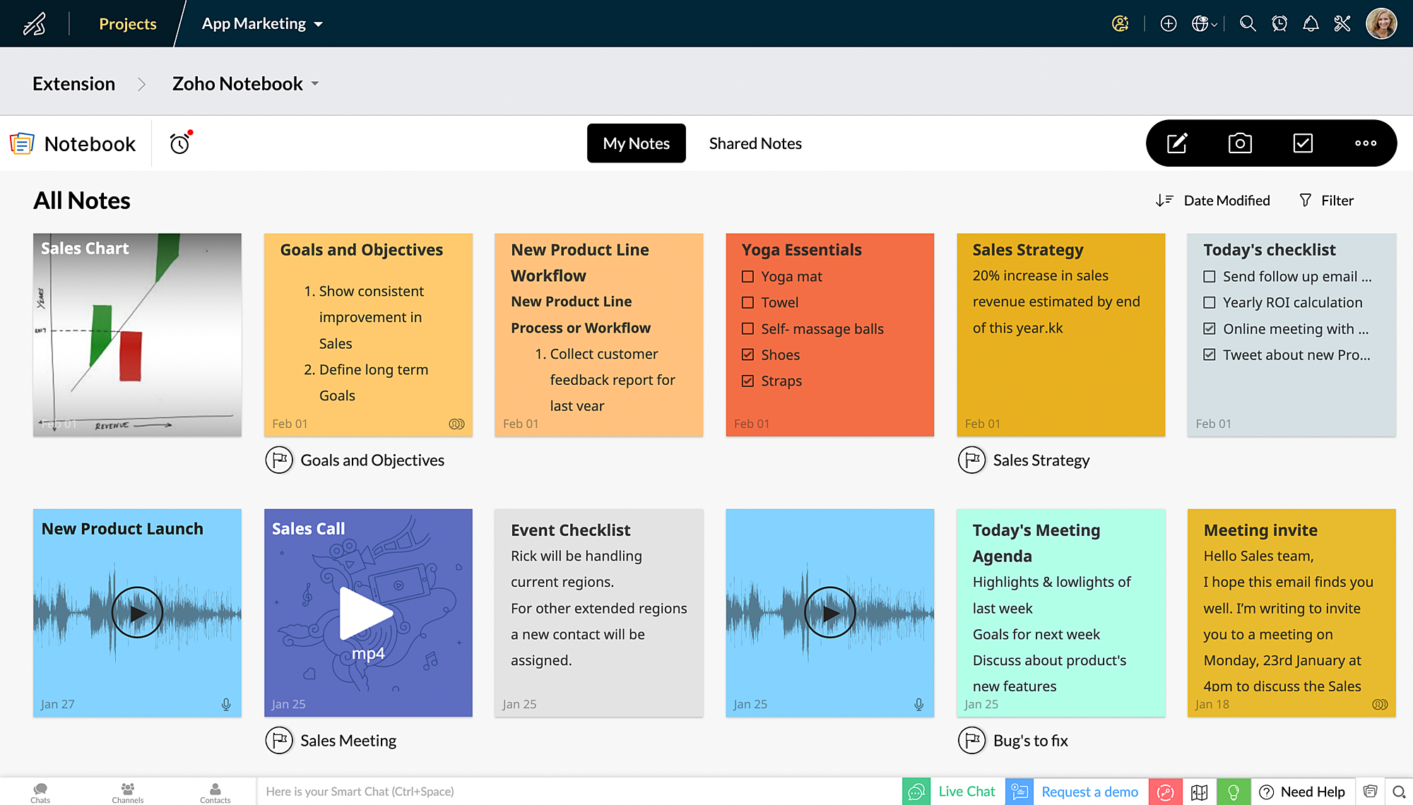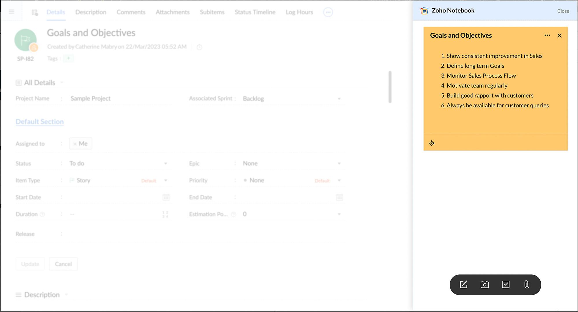 Zoho Sprintsを使用して計画し、追跡し、協力する一方で、Notebookのプロジェクトとの統合により、生産性を向上させることができます。
