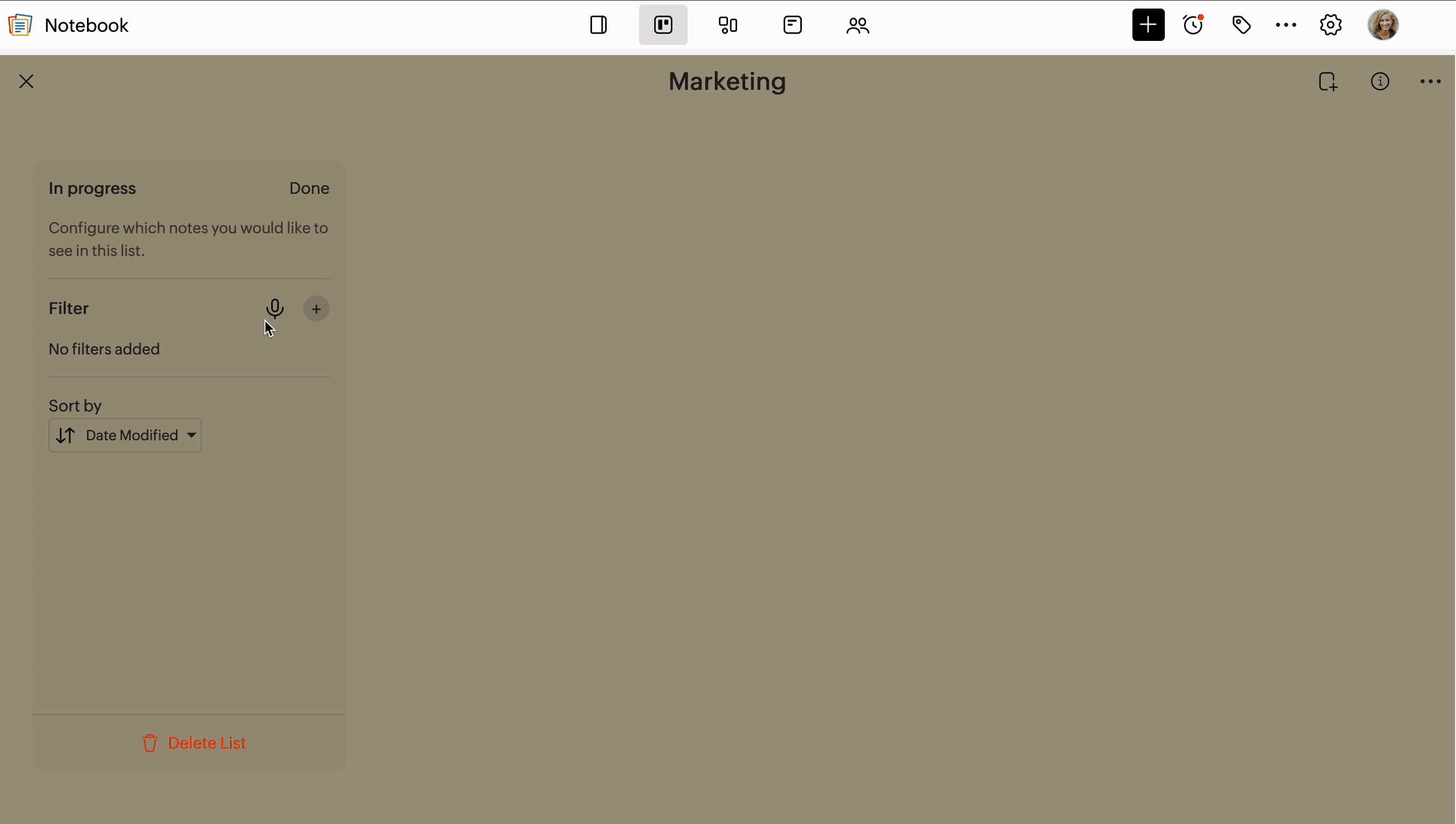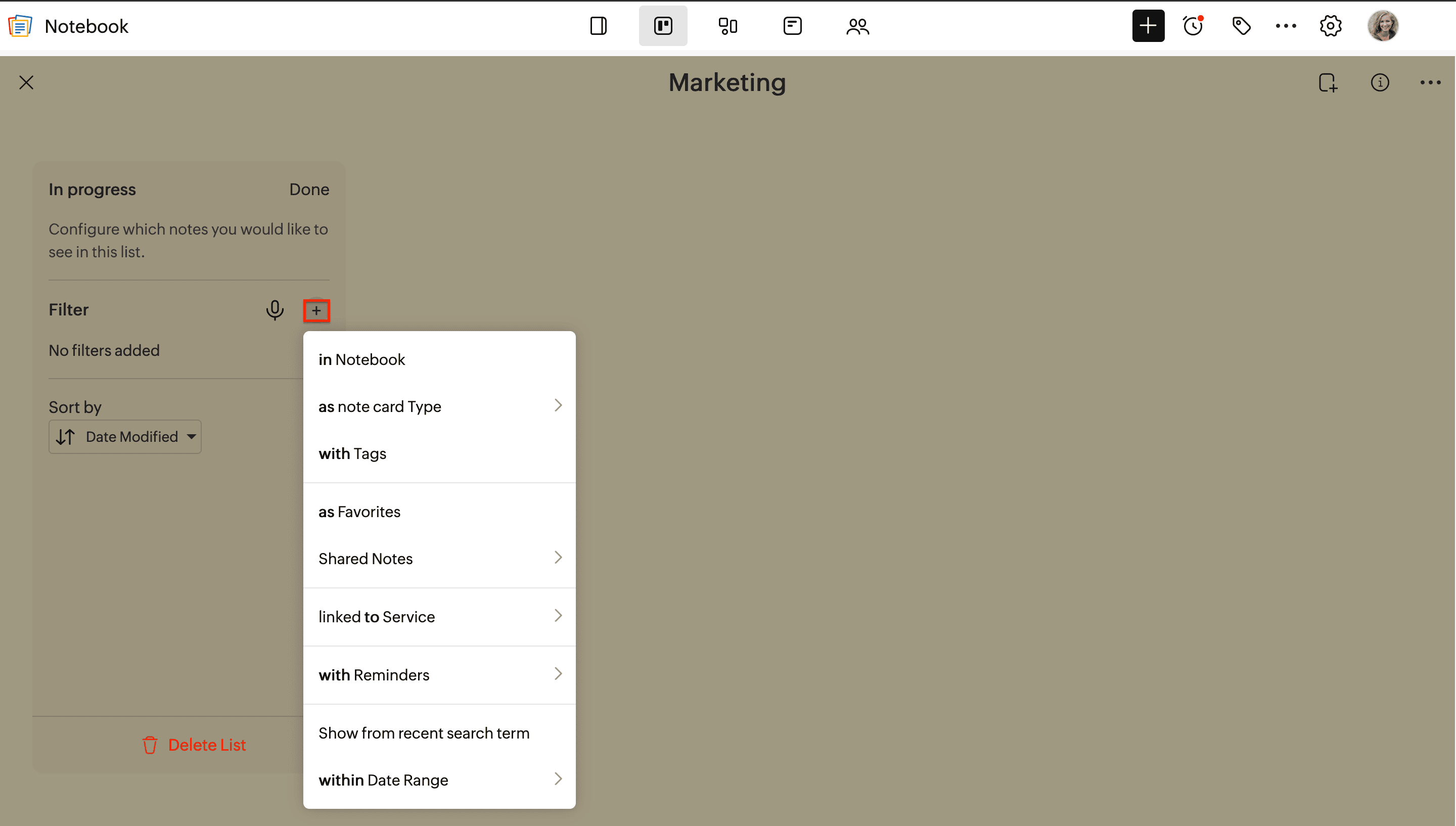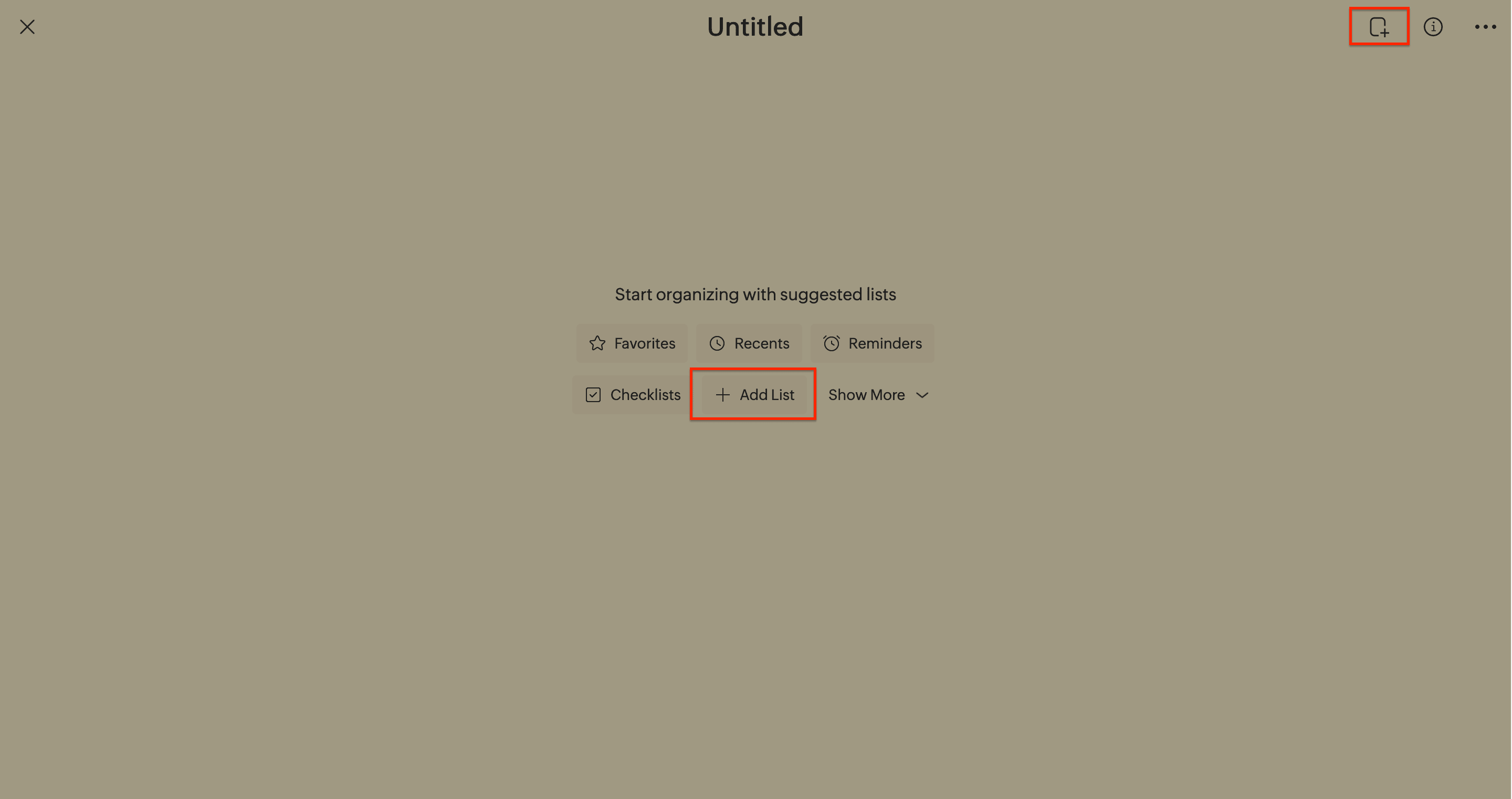 リスト上の+アイコンをクリックして、新規メモを作成し、カスタムリストを作成できます。