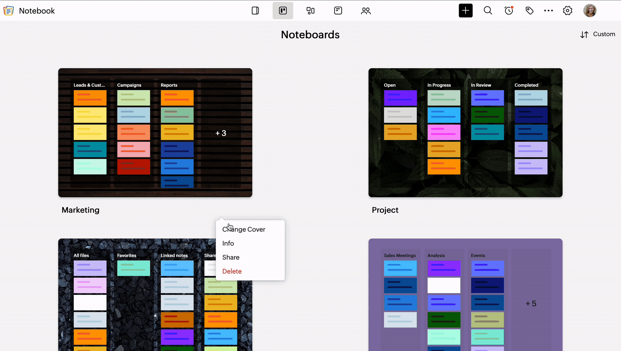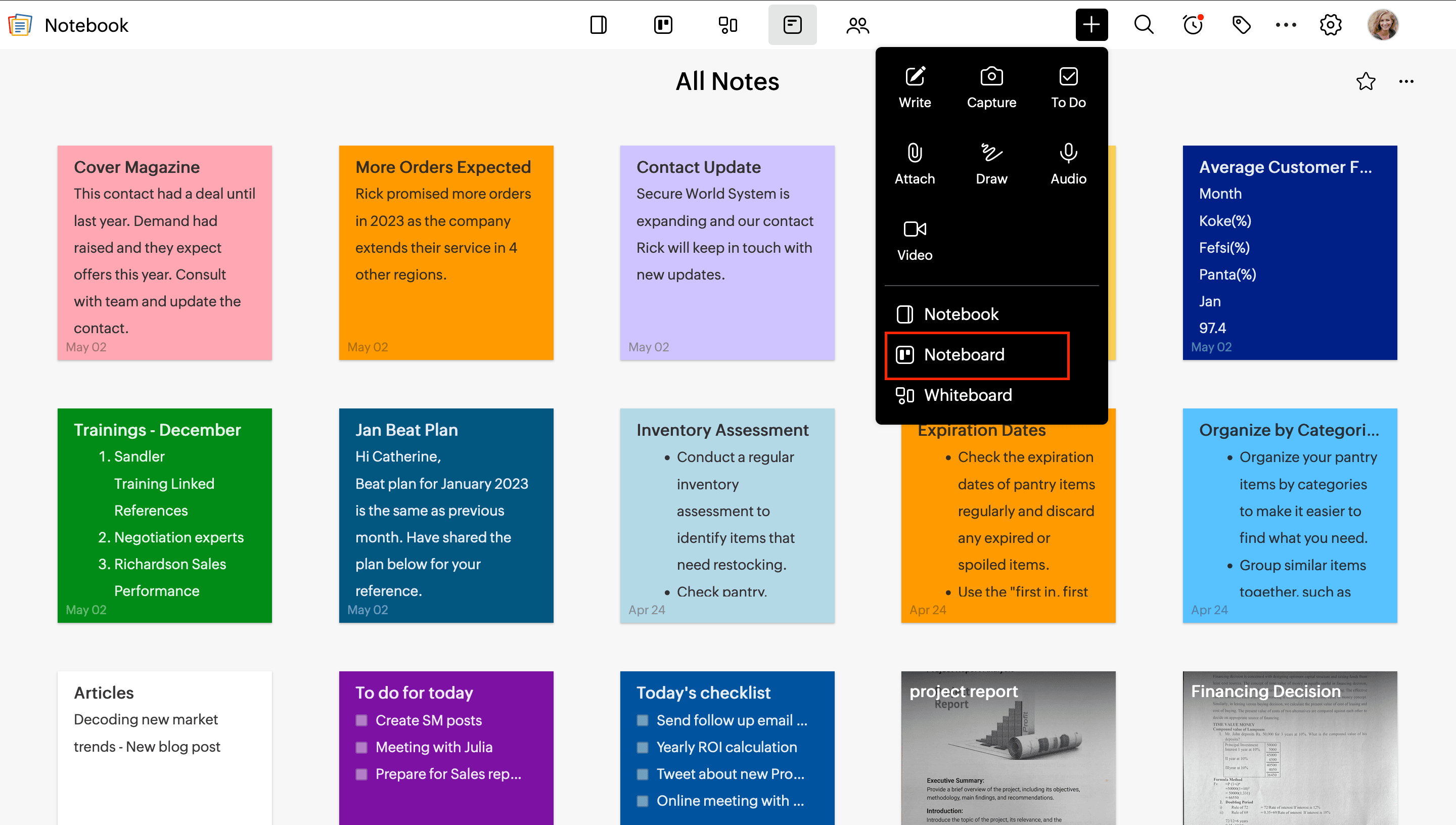 Zoho NotebookのNoteboardsを活用することで、メモの作成や整理の効率が飛躍的に向上します。Noteboardsを作成、カスタマイズ、管理することで、個人およびプロフェッショナルなワークフローを整理し、メモをすっきりと管理し、簡単にアクセスできます。ご不明な点がございましたら、サポート@zohonotebook.comまでお問い合わせください。