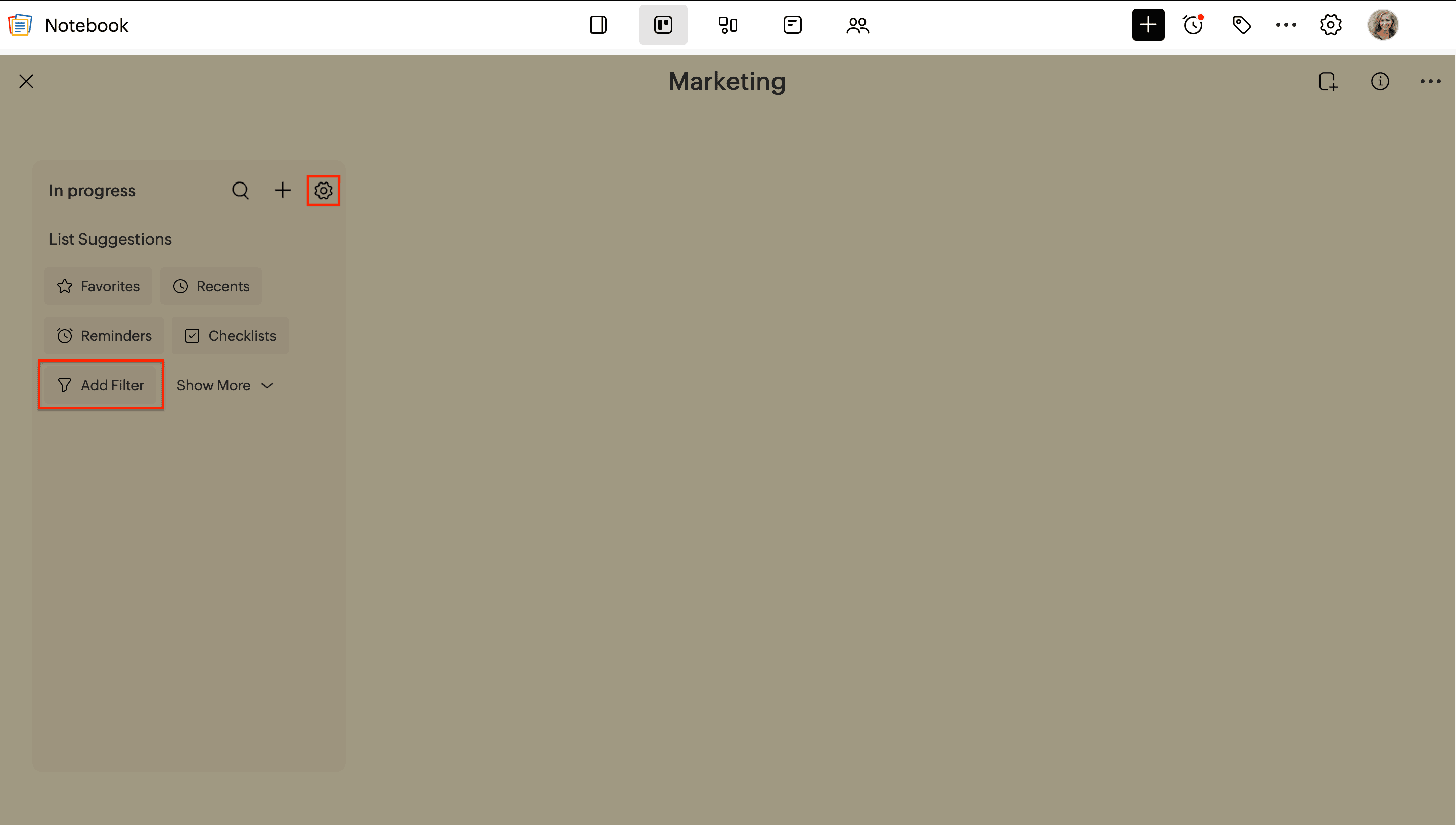 または、ギアアイコンをクリックしてフィルターを追加することもできます。